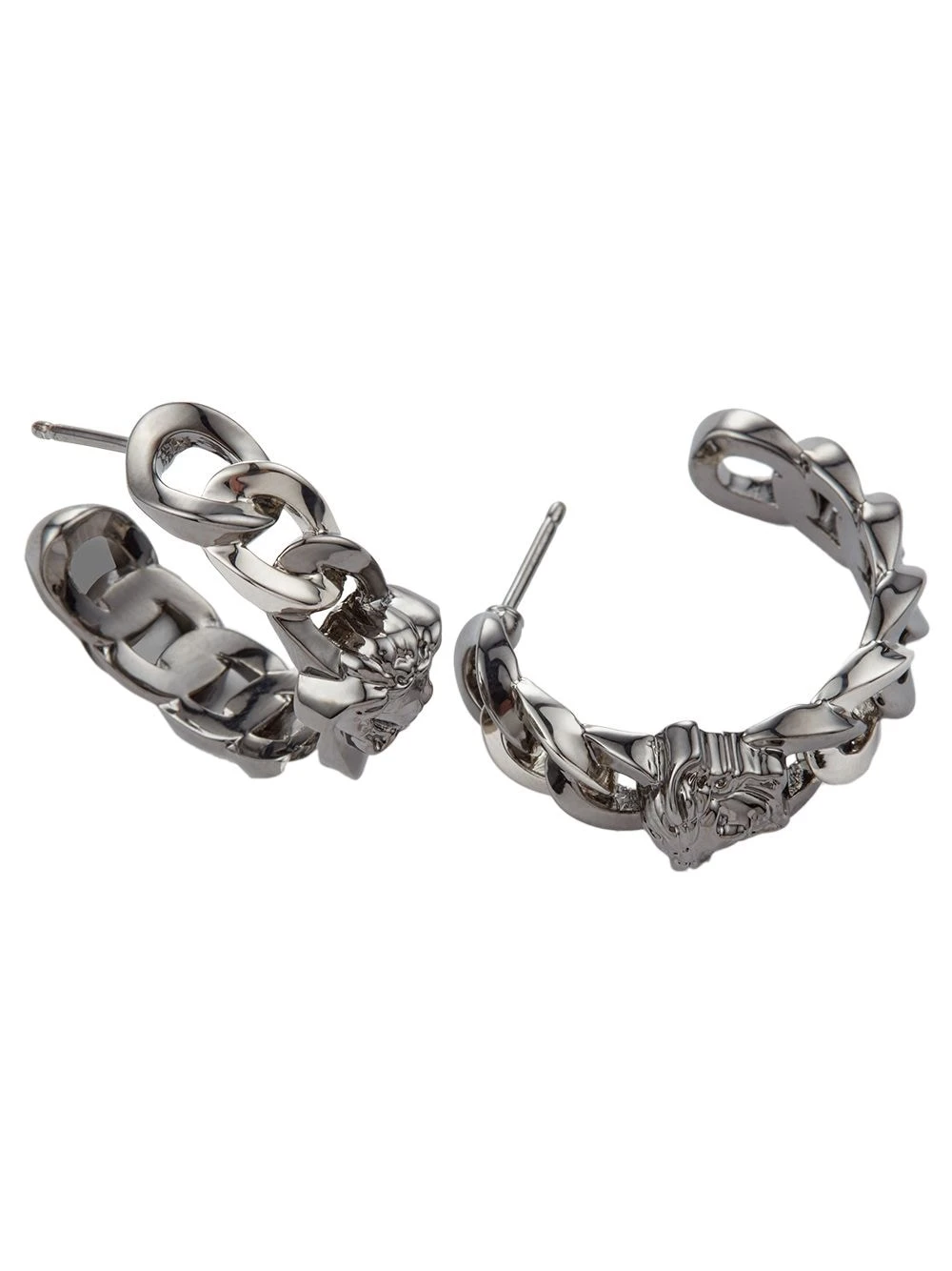 Fermoir papillon, motif Medusa, maille gourmette, design de petit anneau, pour oreilles percées. Matière : métal. Ces boucles d’oreilles sont vendues par paire.
