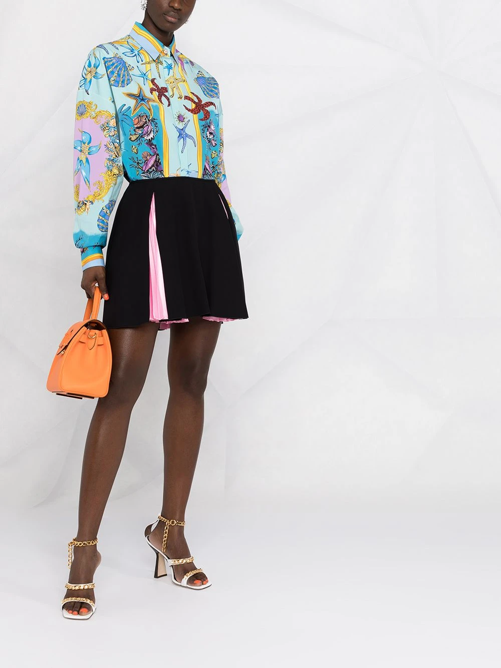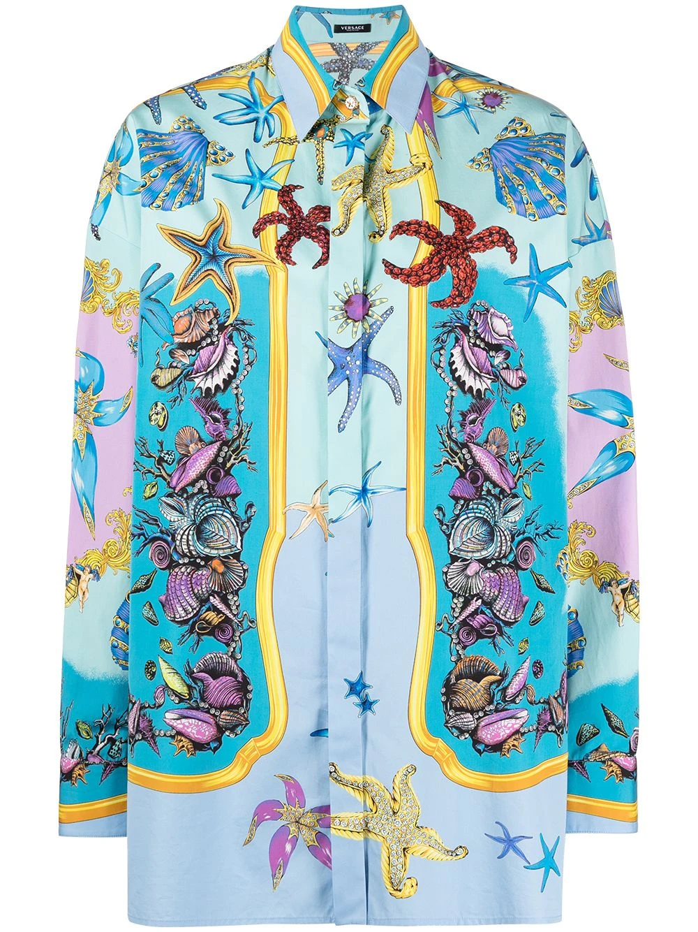 Imprimé graphique, col classique, effet d’épaules descendues, boutonnière dissimulée sur le devant, manches longues, poignets boutonnés, ourlet droit. Couleur : Multicolore. Matière : coton.