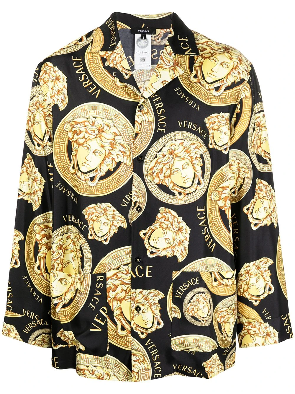 Col cranté, boutonnière sur le devant, coutures ton sur ton, imprimé monogrammé, manches longues, deux poches plaquées avant, ourlet incurvé. Matière : soie.