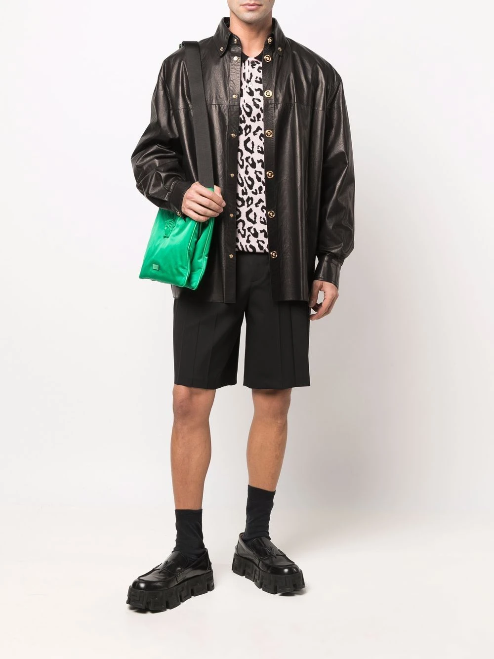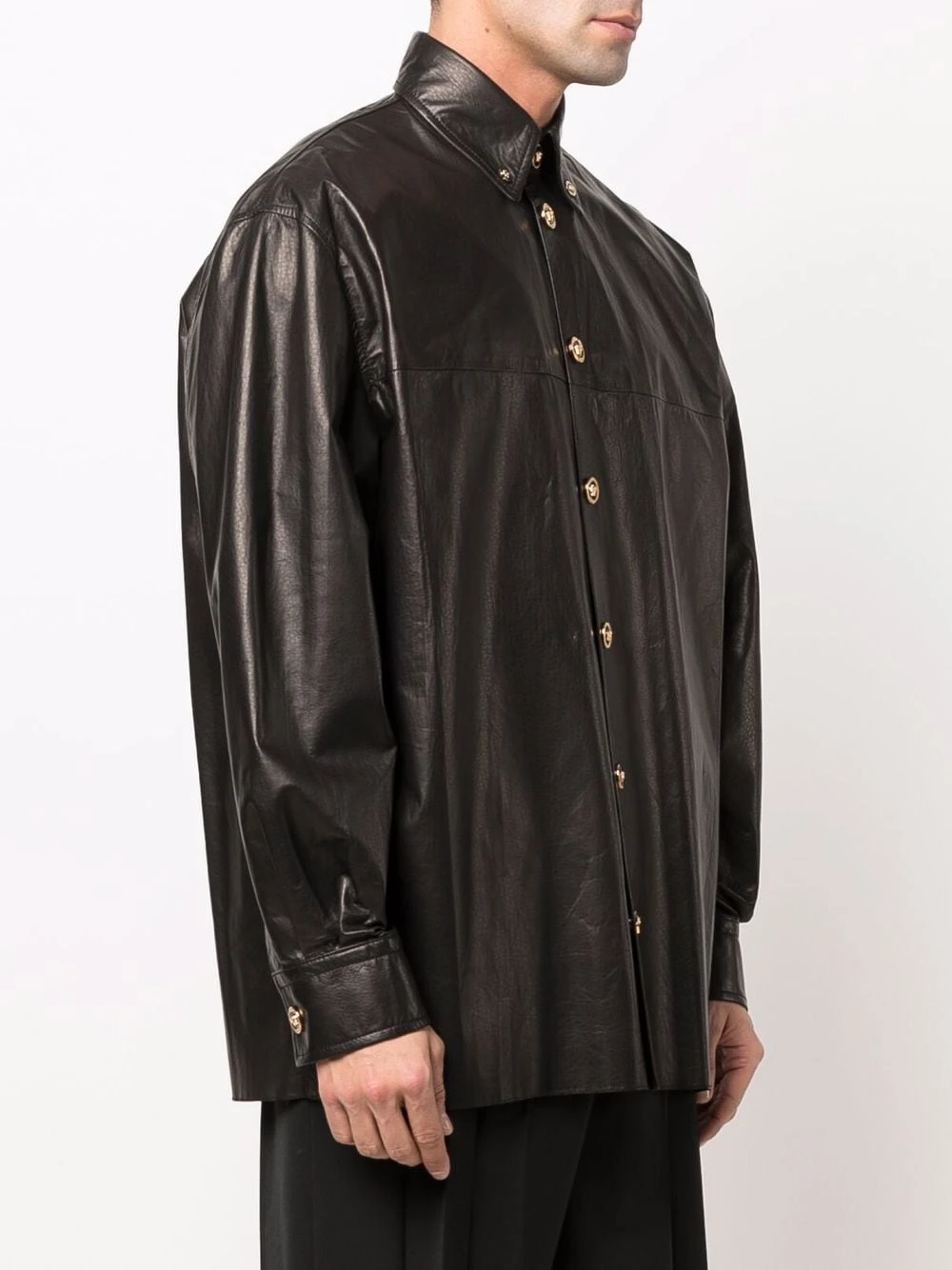 Versace chemise en cuir à boutonnière