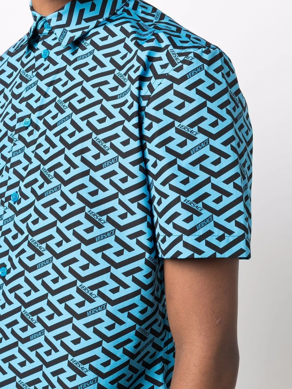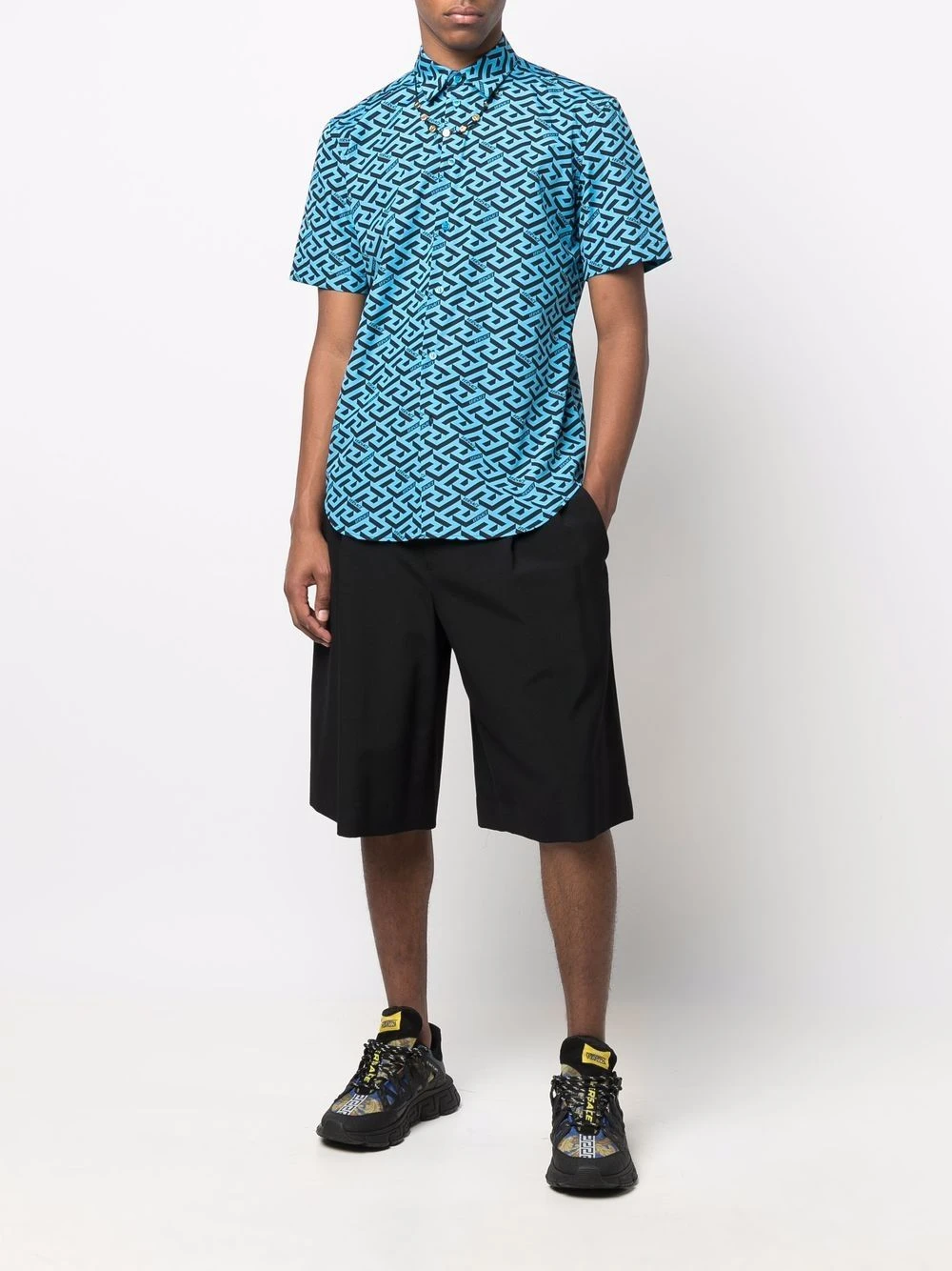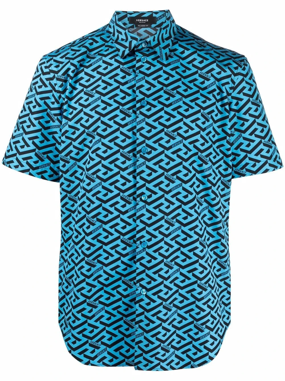 Imprimé La Greca signature, col italien, boutonnière sur le devant, manches courtes, ourlet incurvé. Matière : coton.