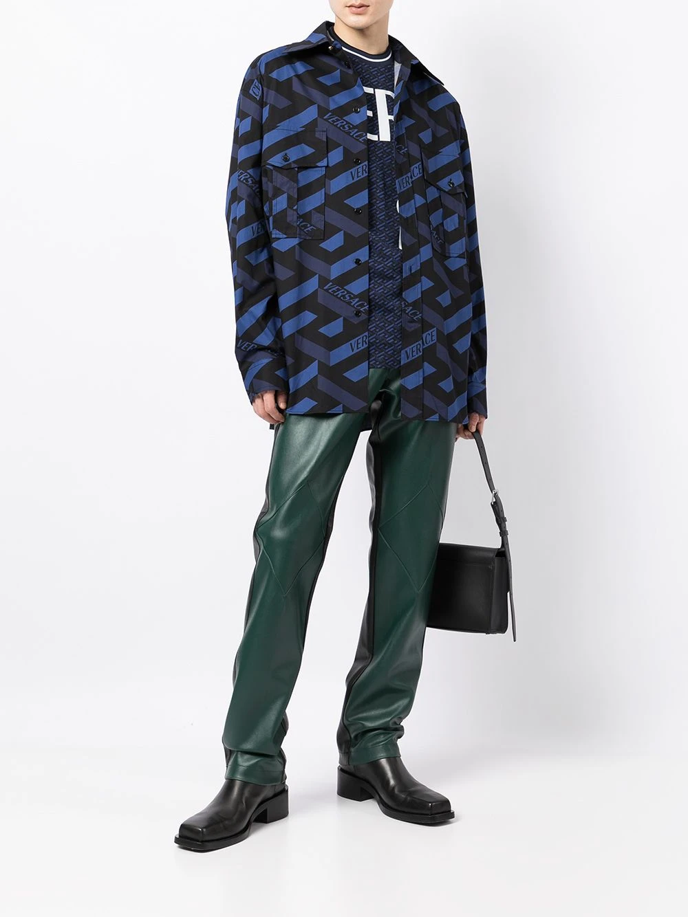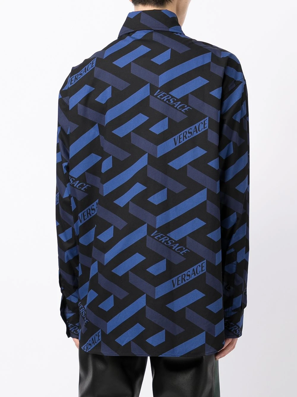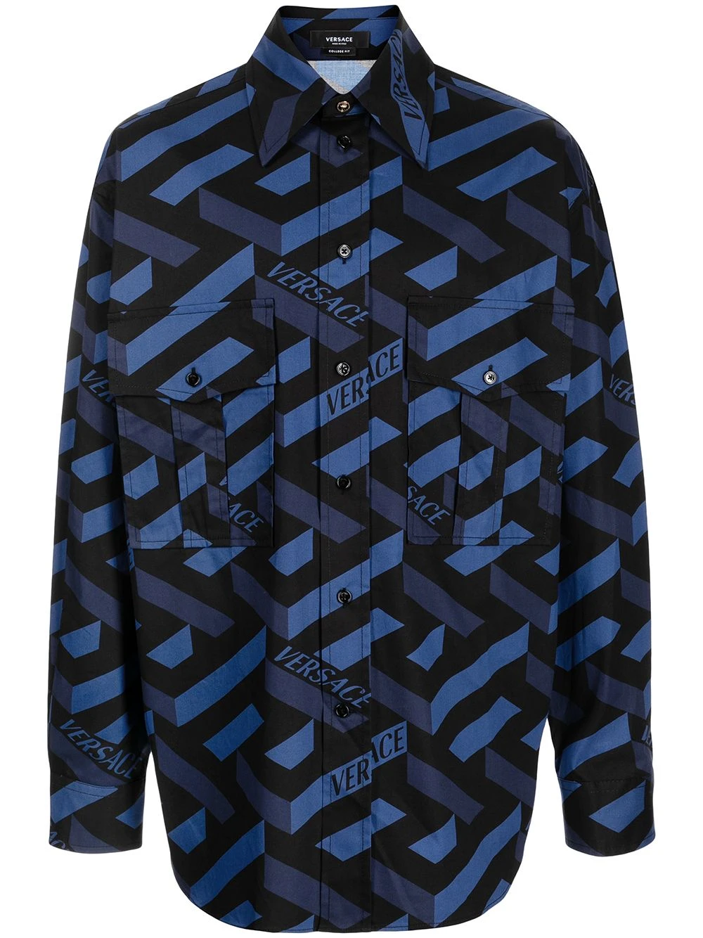 Imprimé La Greca signature, col pointu, poches poitrine à rabat, boutonnière sur le devant, poignets boutonnés. Matière : coton.