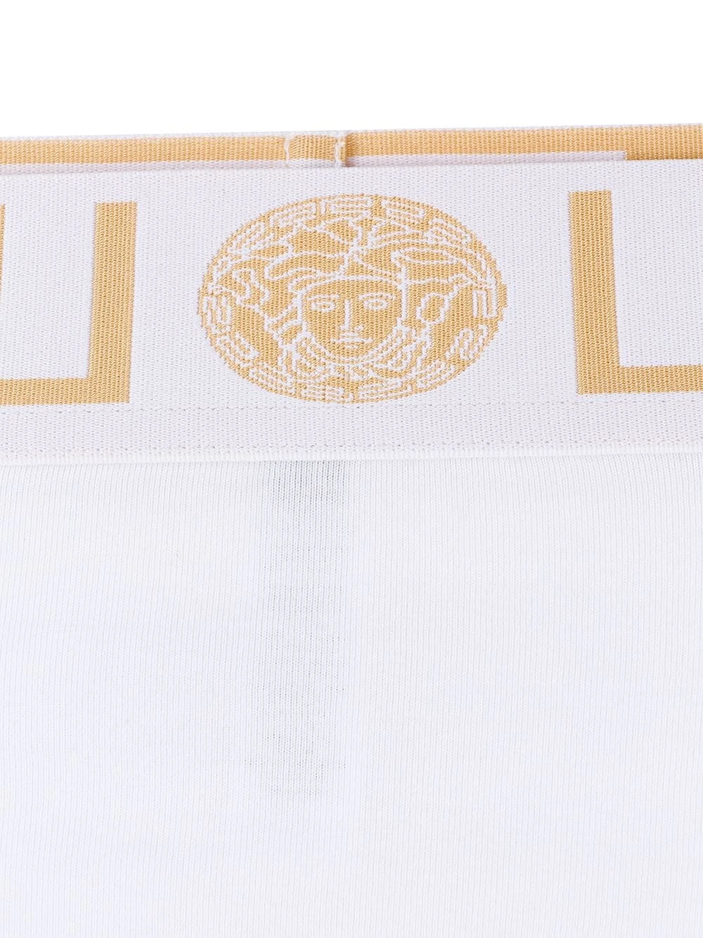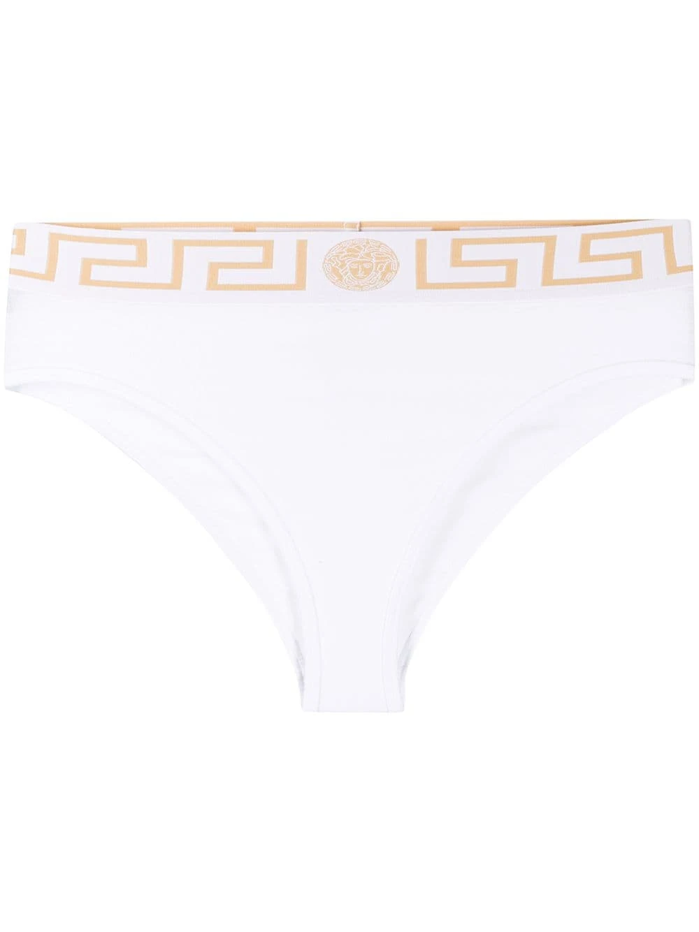 Culotte Greek Key Versace avec coupe stretch, ceinture élastique et détail Medusa. Couleur : blanc. Les sous-vêtements et la lingerie doivent être essayés par dessus vos propres vêtements.