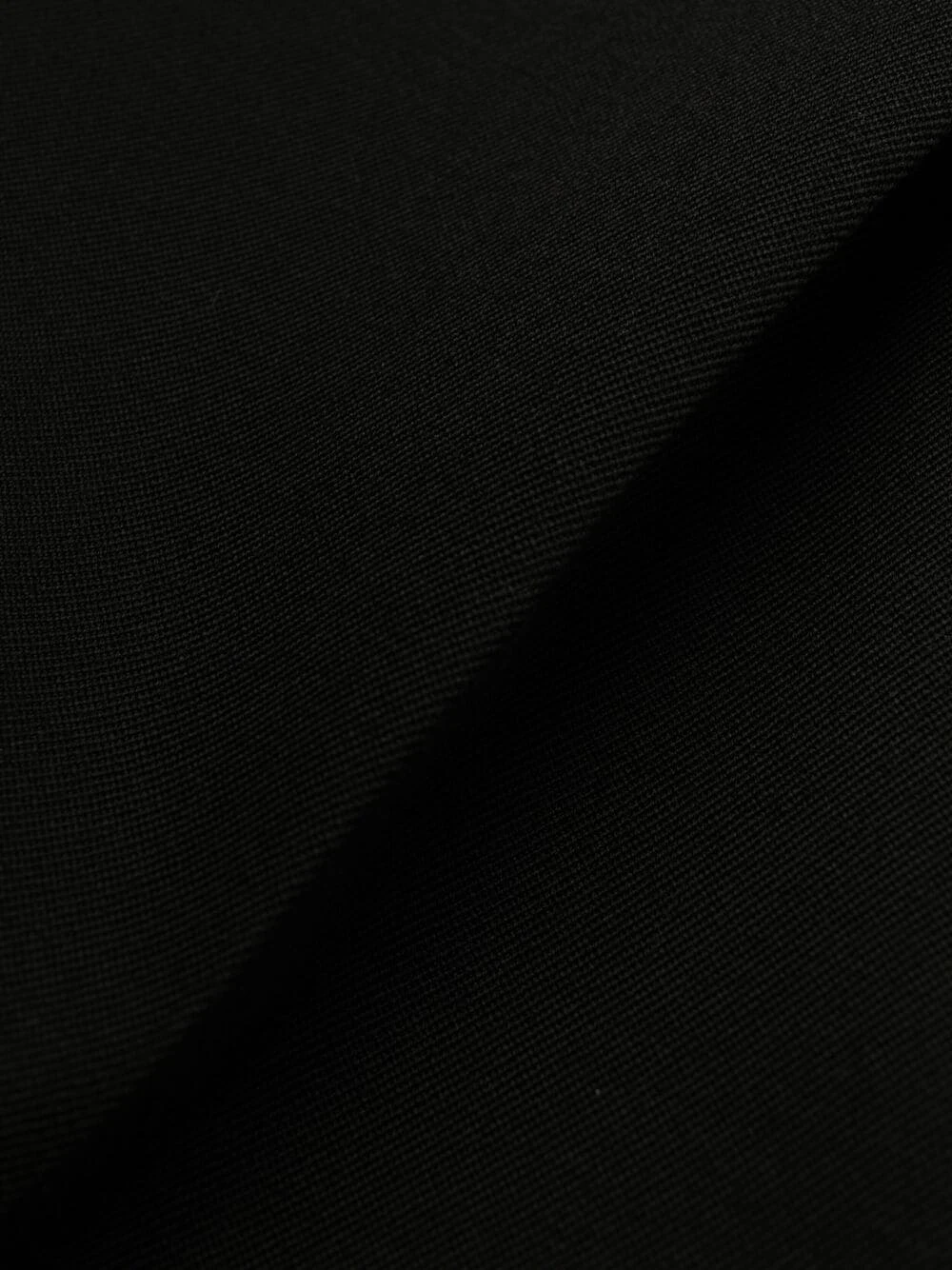 Plis marqués, logo brodé à l’arrière, lien de resserrage à la taille, ceinture élastique, poches latérales fendues, poche arrière passepoilée. Couleur : noir. Matière : laine vierge.