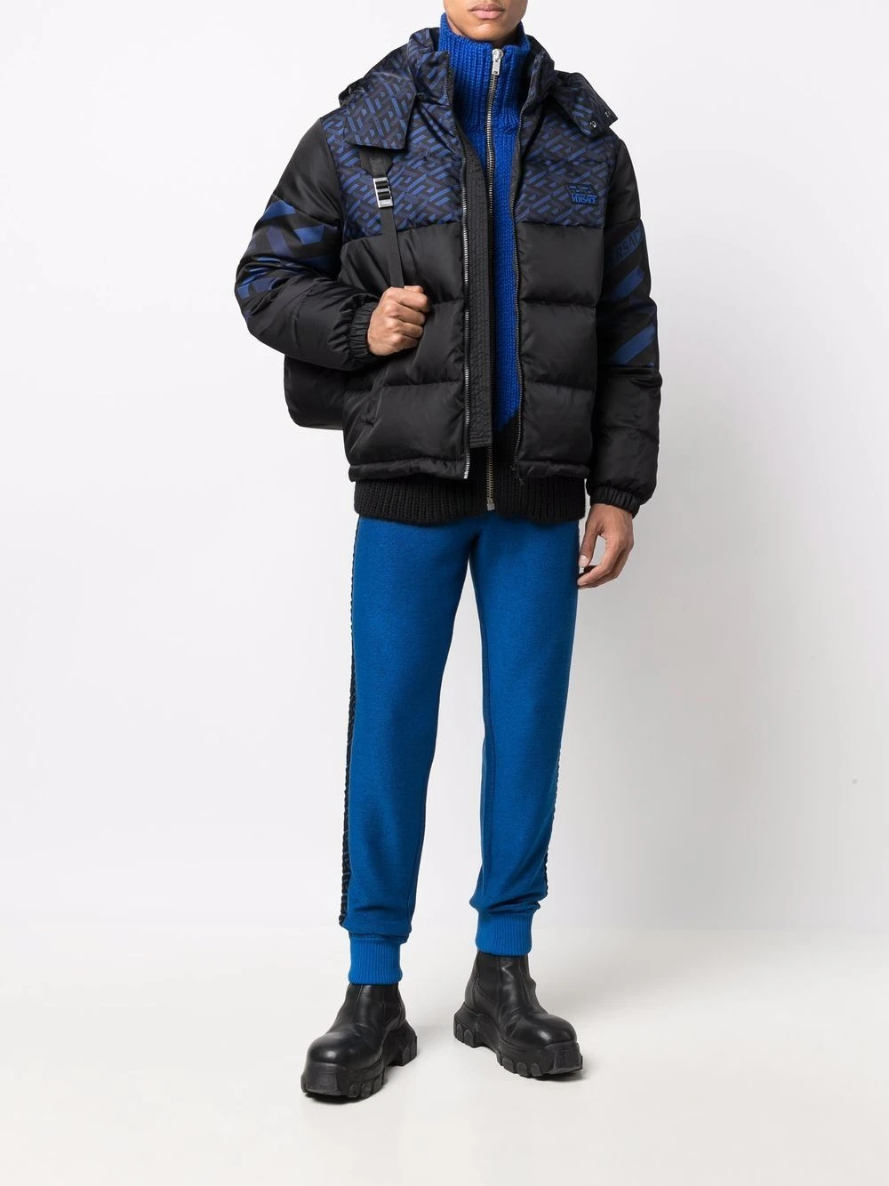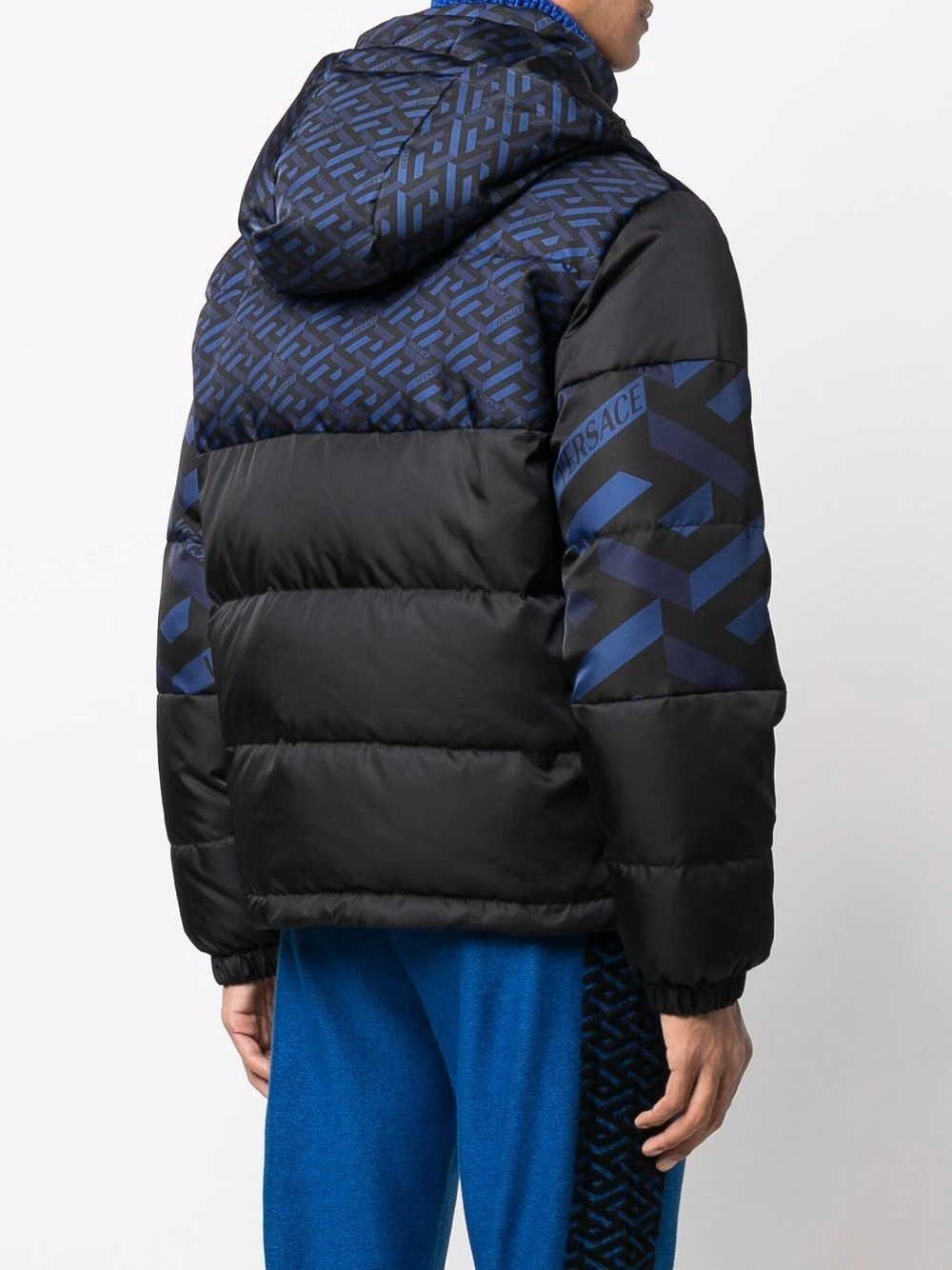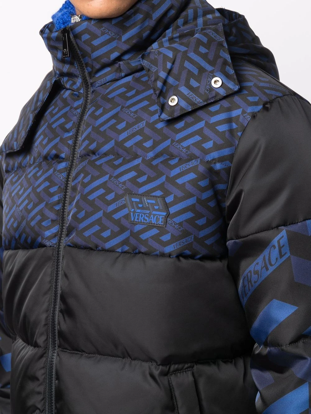 Imprimé monogrammé, design à empiècements, garnissage en duvet, design matelassé, col montant, fermeture zippée devant, manches longues, deux poches passepoilées avant. Matière : coton.