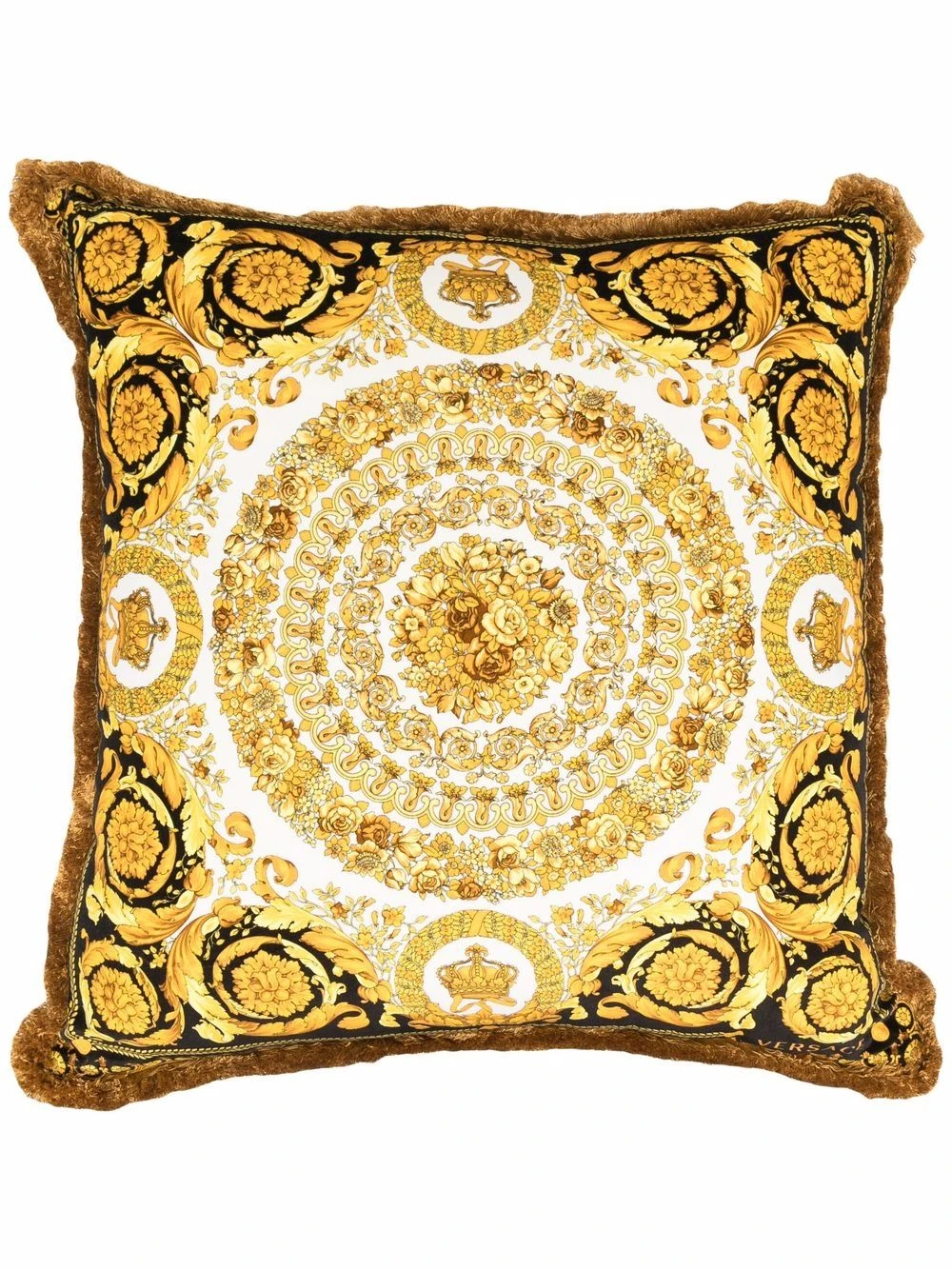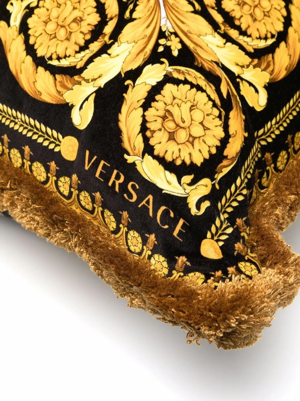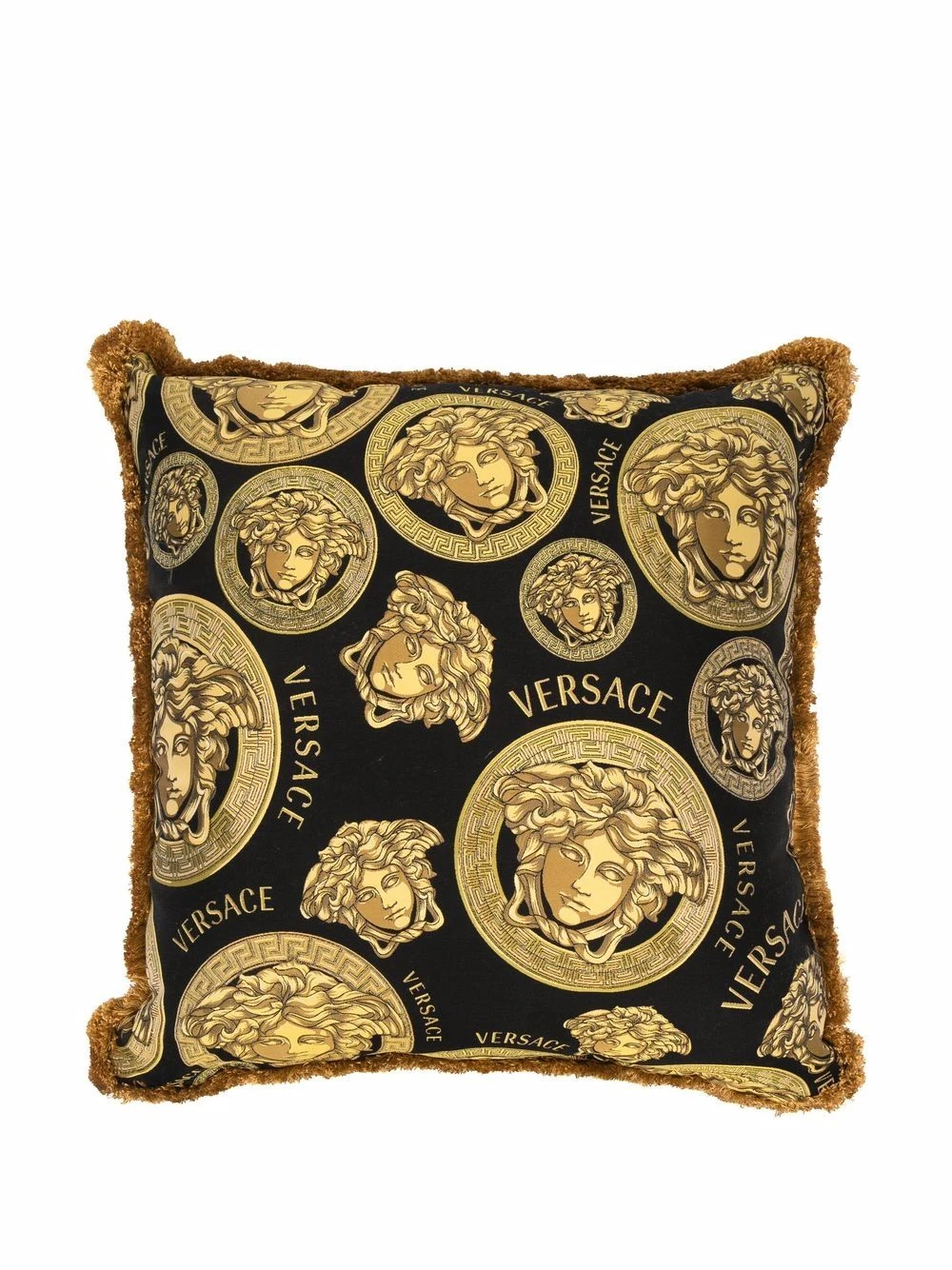 Imprimé Barocco signature, motif Medusa, design réversible, forme carrée, bordure à franges.