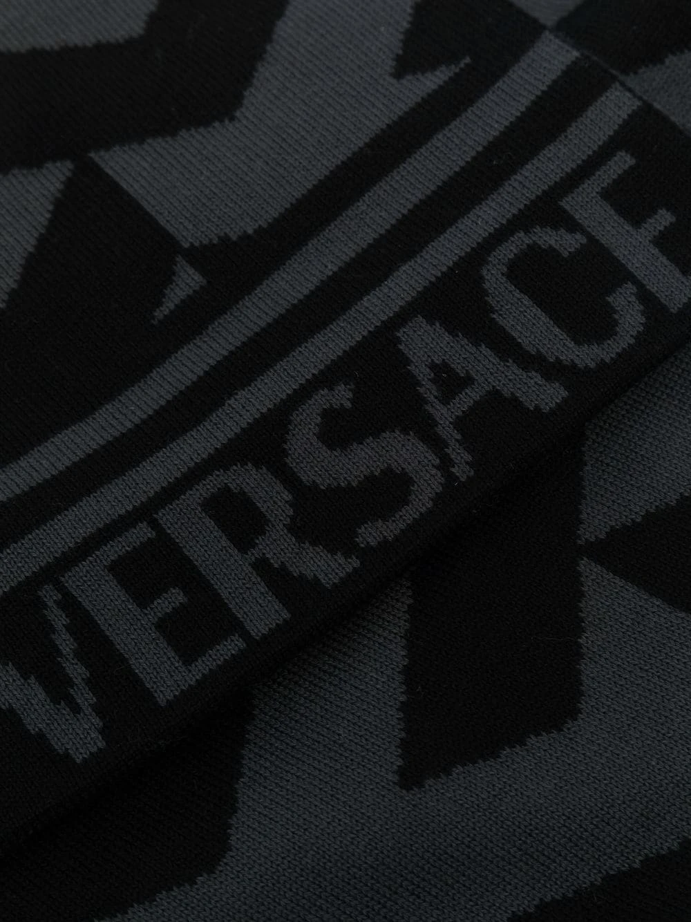 Design en maille, logo intarsia, détail Greca signature. Couleur : noir.