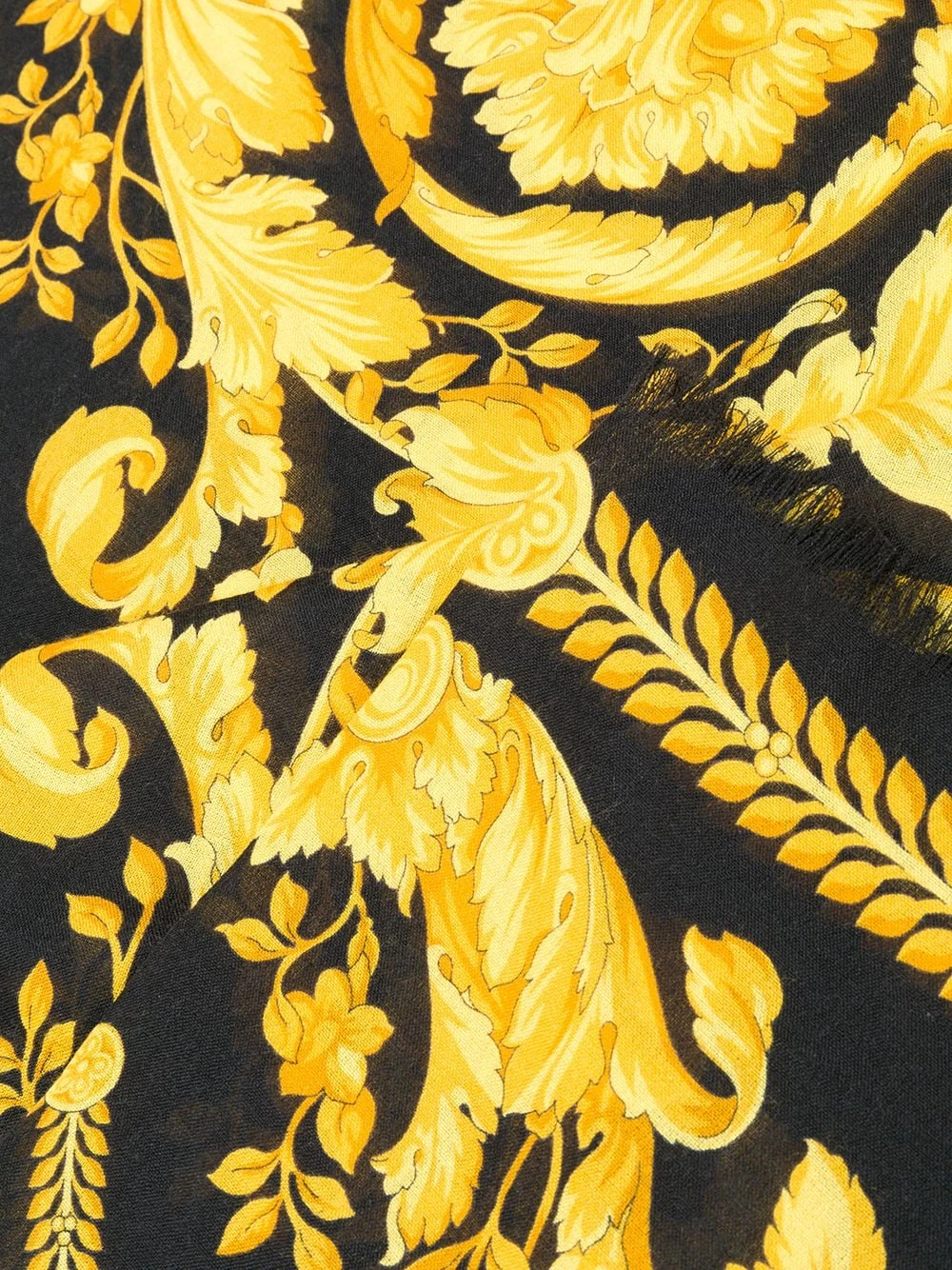 Foulard à imprimé baroque en laine Versace avec une maille fine, finitions effilochées et imprimé baroque.