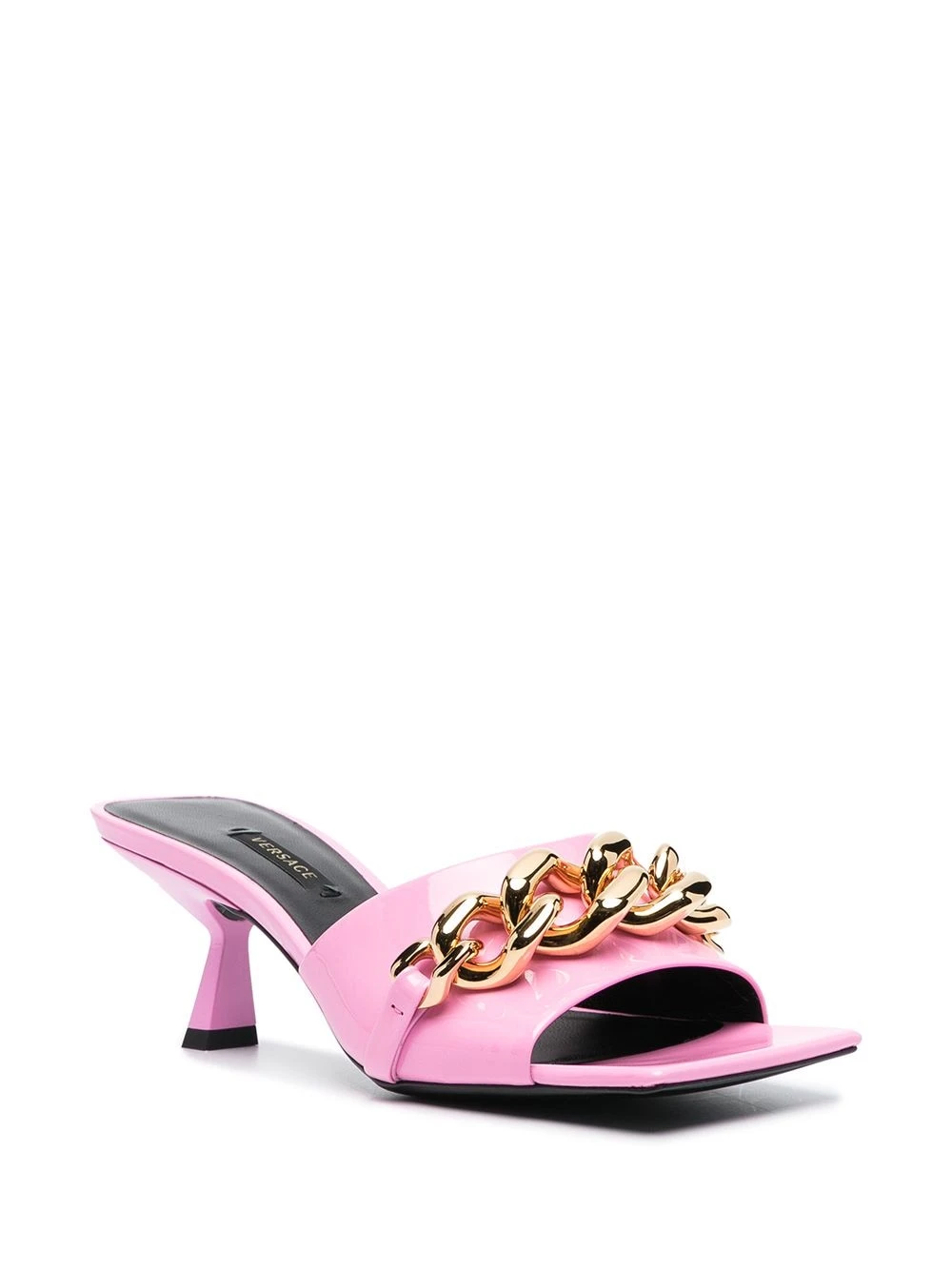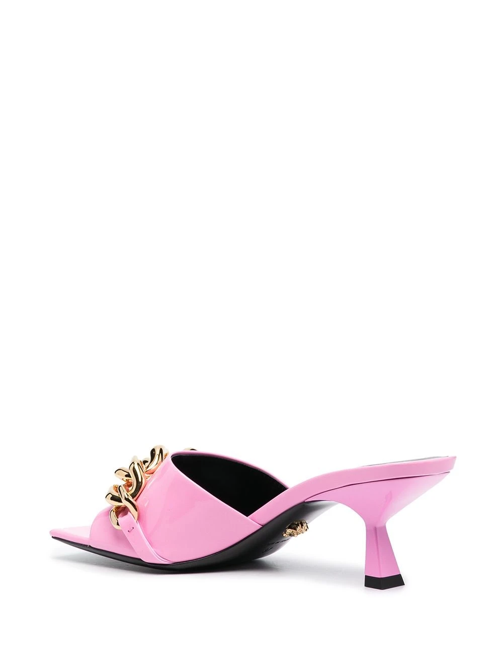 Bout ouvert, maille gourmette, design à enfiler, semelle intérieure à logo, talon mi-haut.