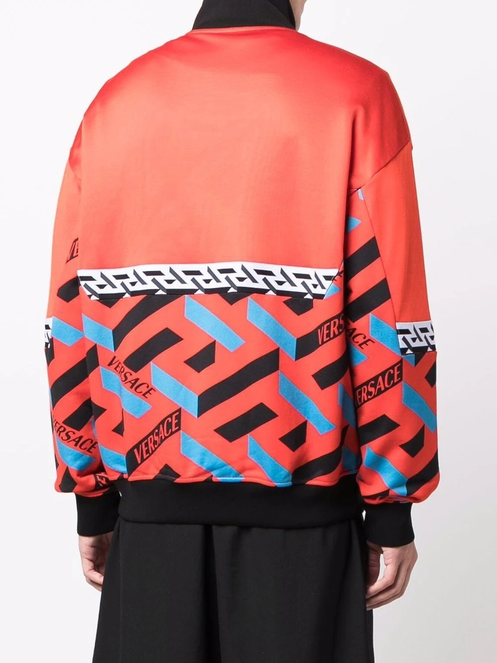 Logo imprimé à la poitrine, imprimé La Greca signature, col cheminée, fermeture zippée devant, manches longues, bordures nervurées.