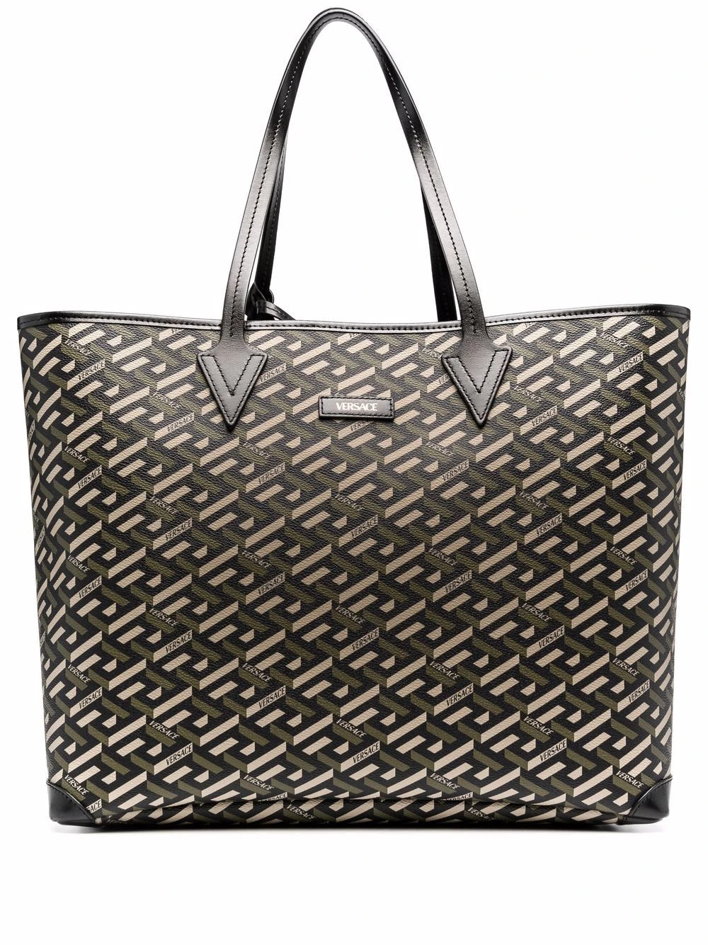 Motif géométrique, imprimé monogrammé, anses sur le dessus, compartiment principal. Couleur : noir.