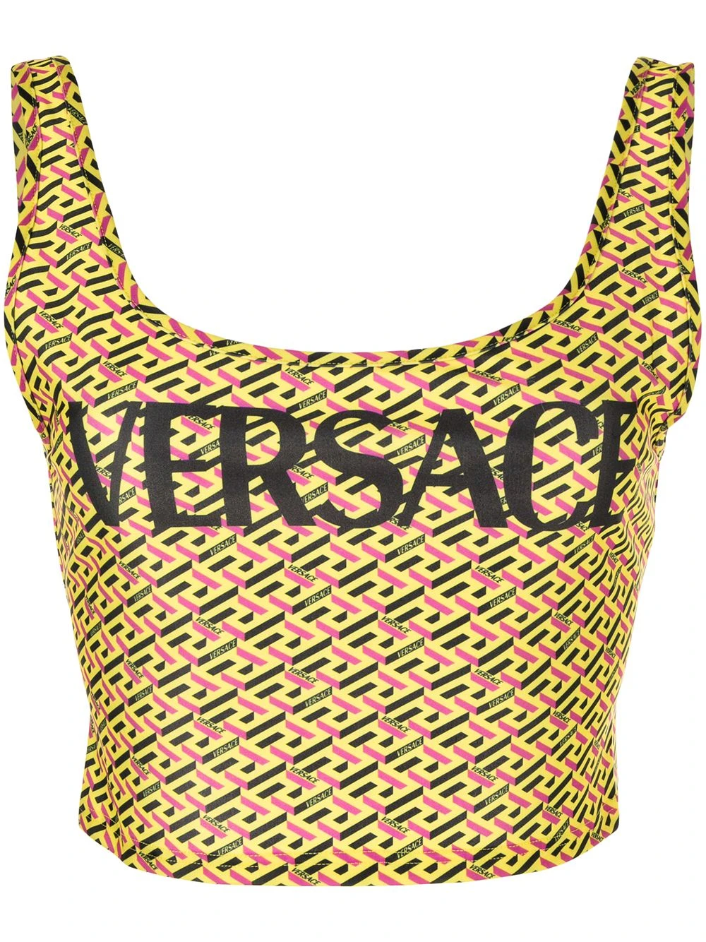 Imprimé La Greca signature, logo imprimé à la poitrine, construction stretch, encolure arrondie, décolleté arrondi dans le dos. Veillez à essayer les maillot de bain par-dessus vos propres sous-vêtements.