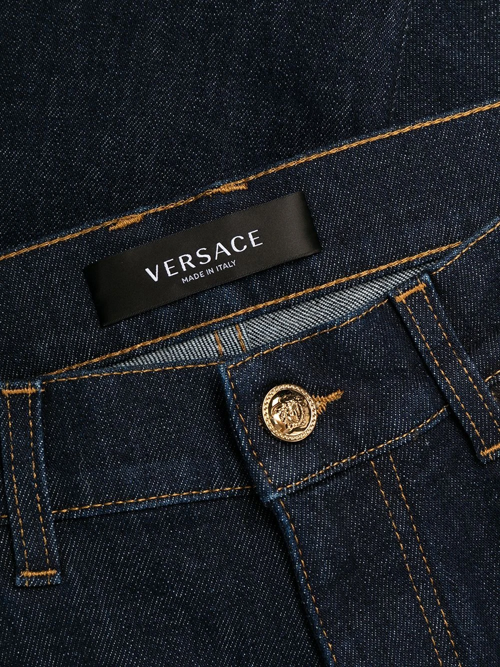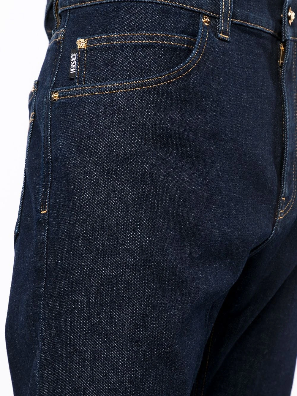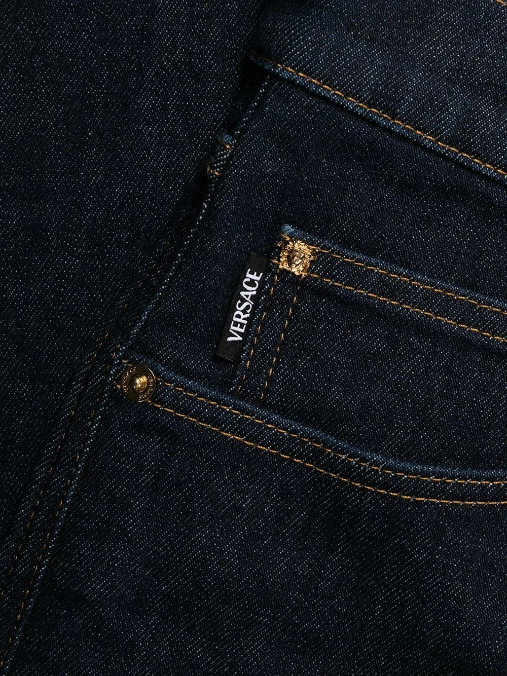 Coupe droite, fermeture boutonnée, passants de ceinture, cinq poches classiques. Matière : coton mélangé.