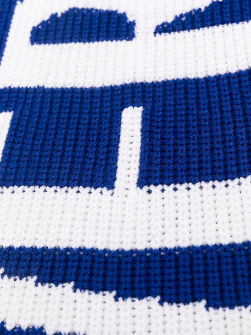 Logo intarsia, maille épaisse, bords frangés. Matière : laine.