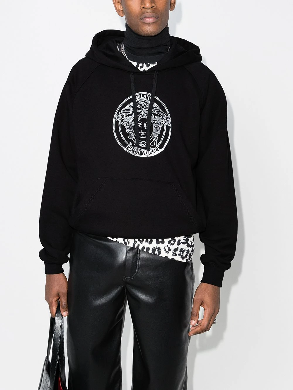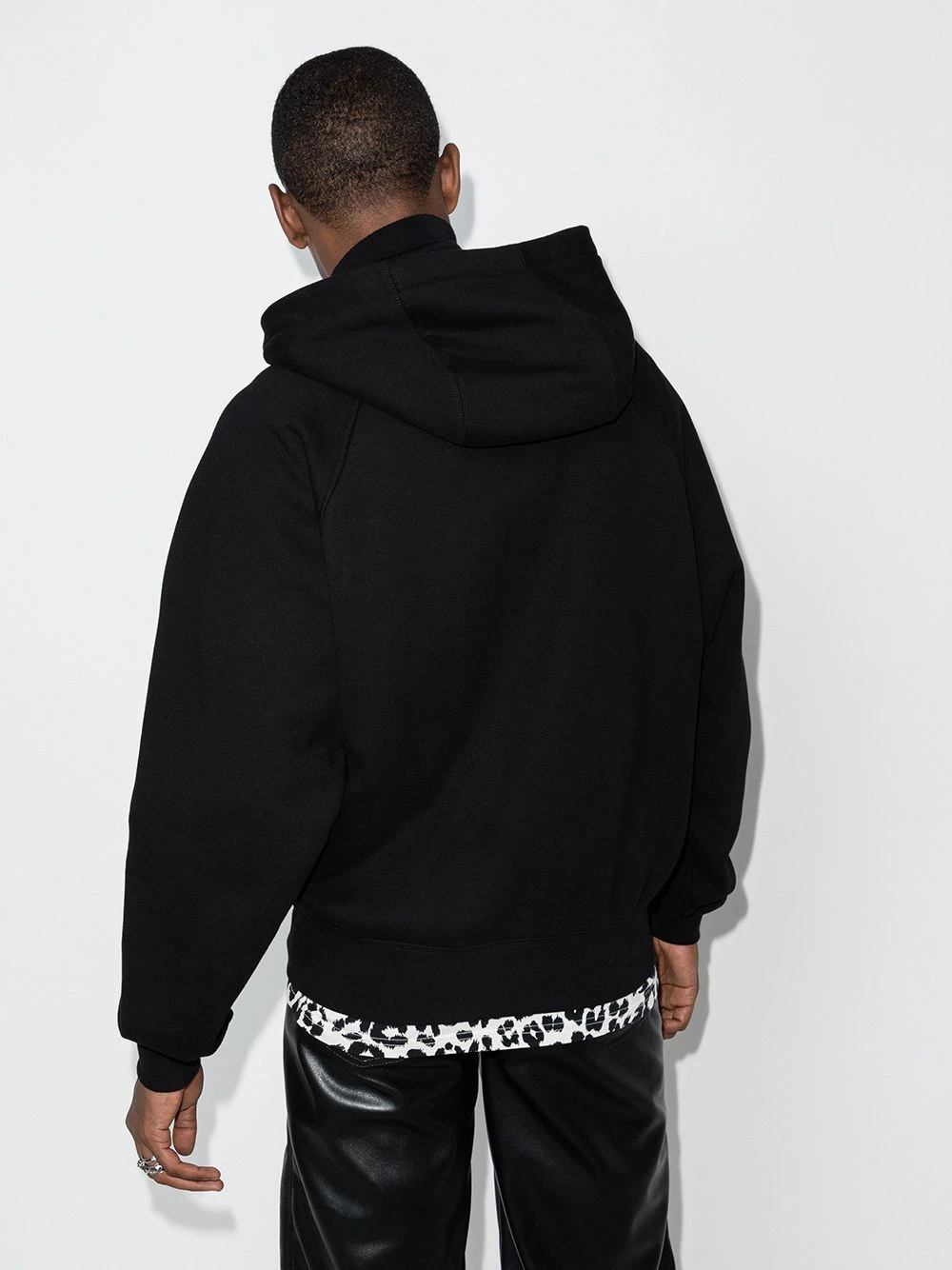 Capuche à lien de resserrage, logo imprimé à la poitrine, poignets élastiqués, ourlet élastiqué. Couleur : noir. Matière : coton.