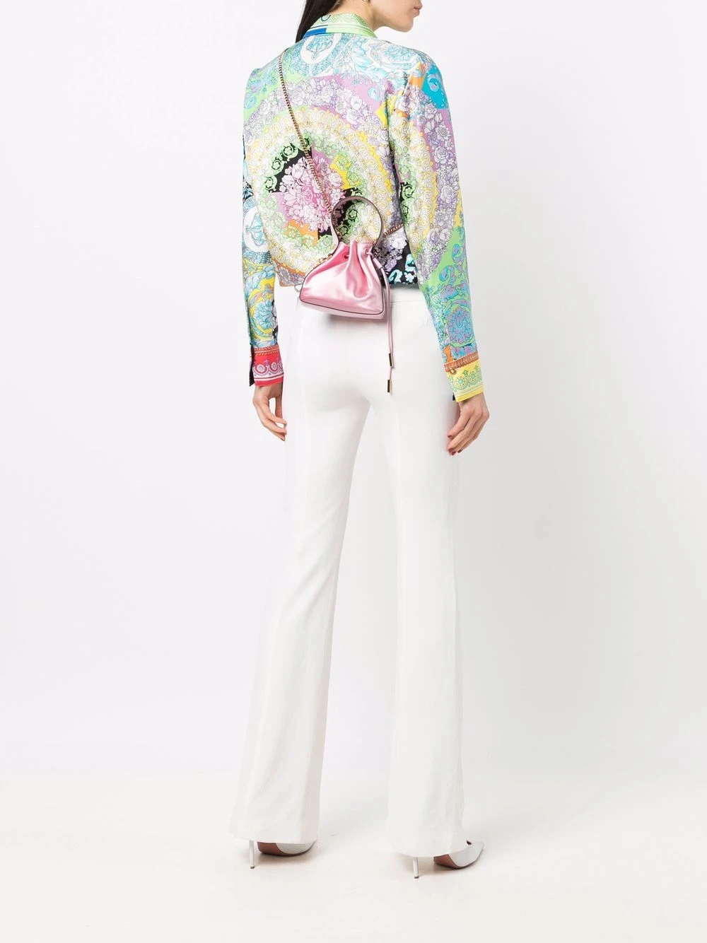 Fini satiné, détail Medusa, ornement en cristal, finitions en métal doré, anse classique, bride porté épaule en chaîne détachable, fermeture à lien de resserrage, compartiment principal. Matière : cuir.