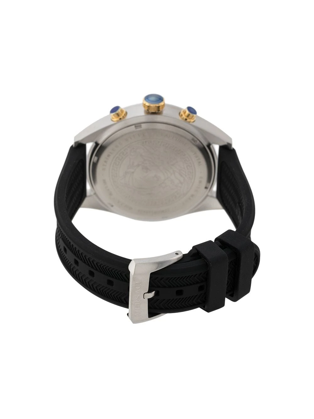 Montre V-Chrono 44 mm en acier inoxydable Versace avec cadran rond, un mouvement à quartz et fermeture à boucle. Couleur : noir.