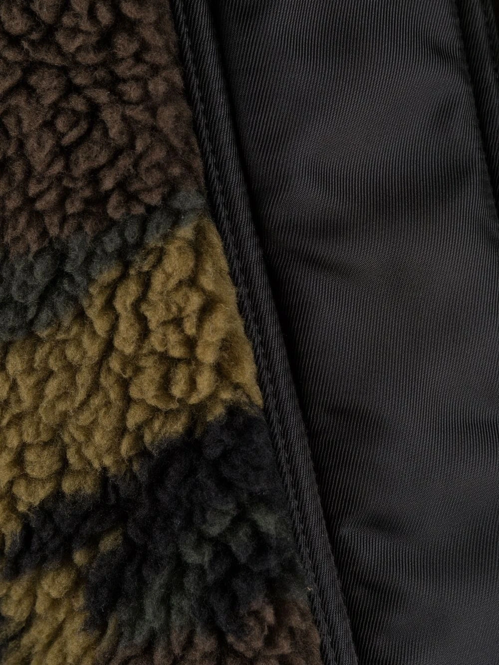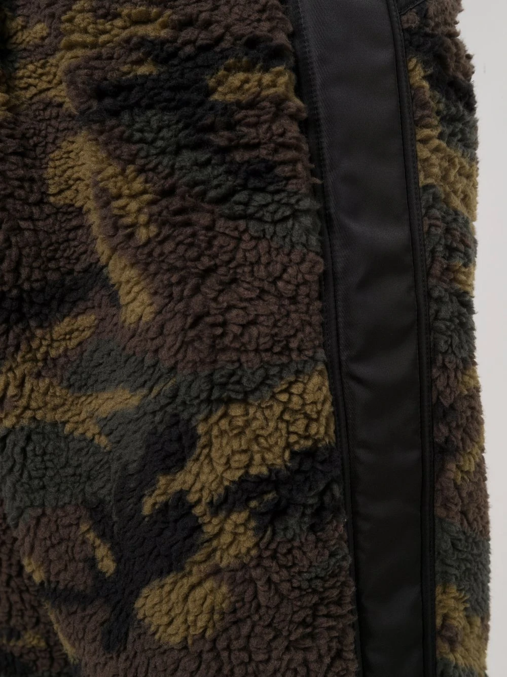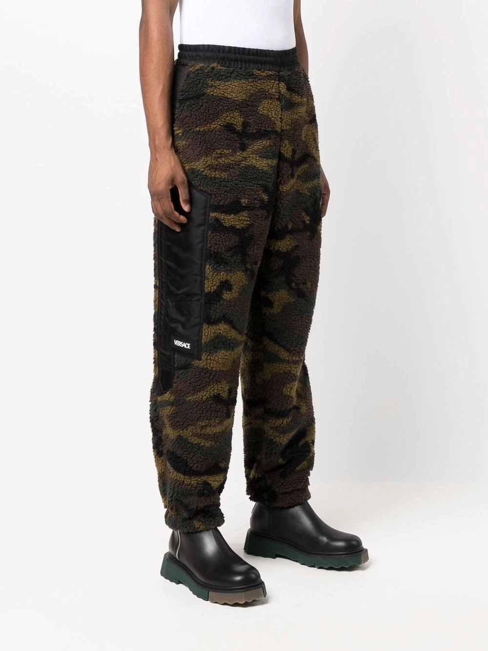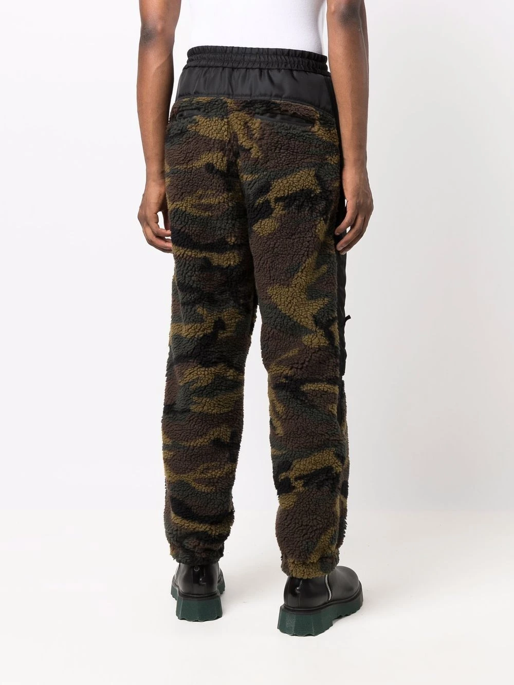 Motif camouflage, texture polaire, détail de rayure latérale, coupe fuselée. Matière : coton.