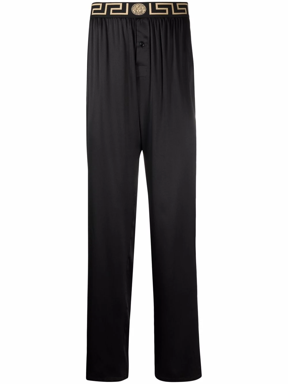 Ceinture élastique, motif Greca signature imprimé, coupe droite. Couleur : noir. Matière : soie.