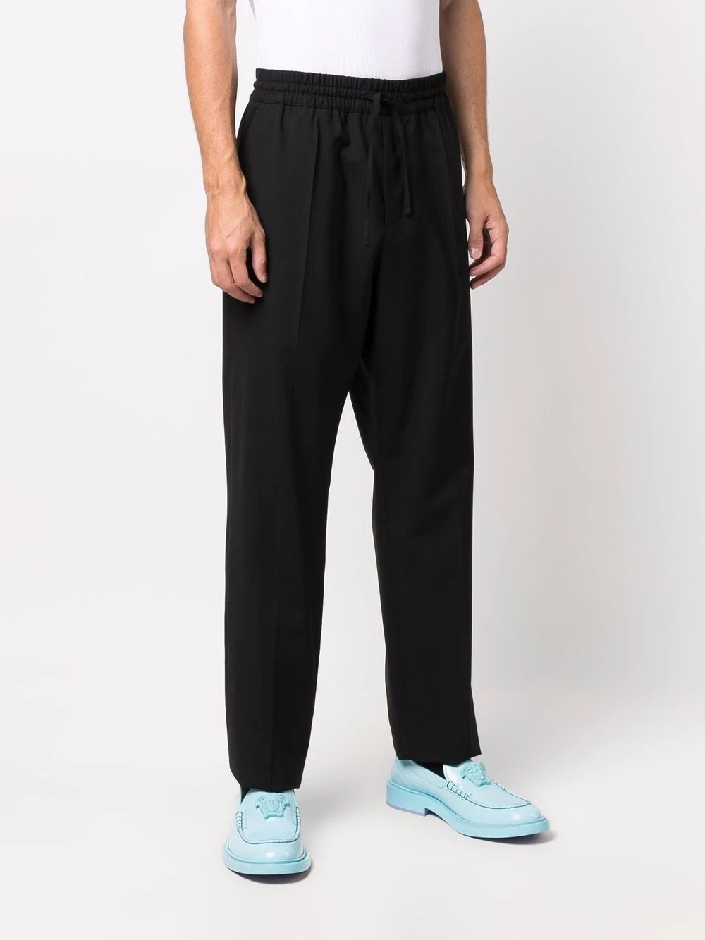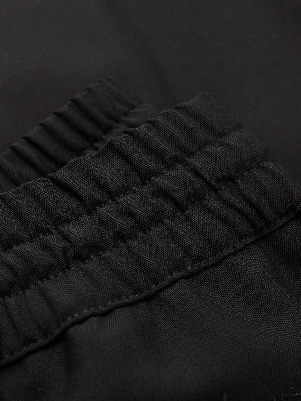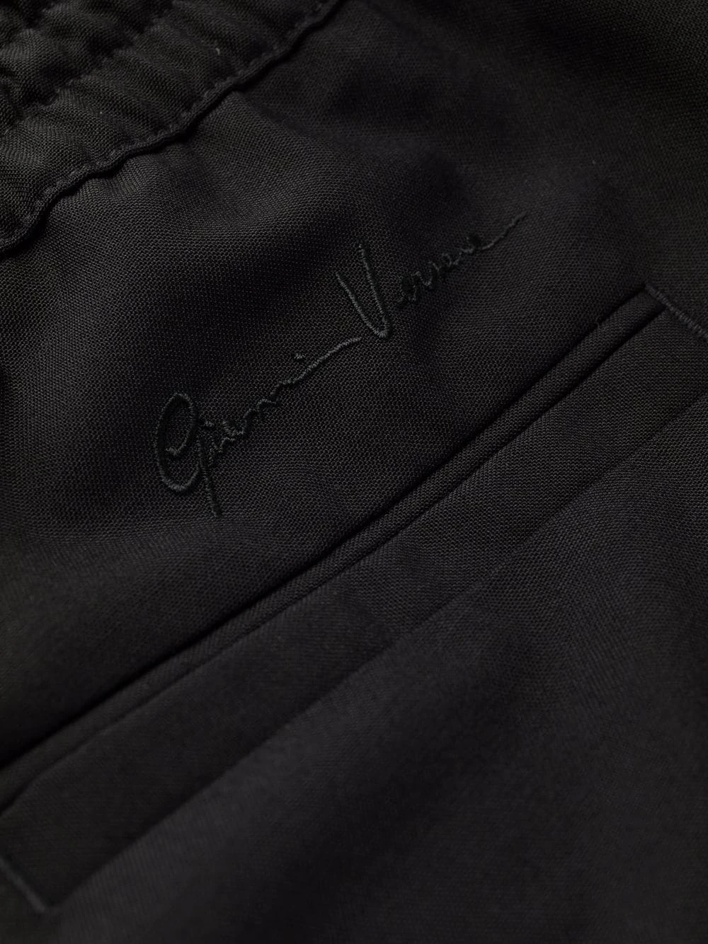 Logo brodé à l’arrière, taille élastique à lien de resserrage, deux poches latérales fendues, poche arrière passepoilée, coupe droite. Couleur : noir.