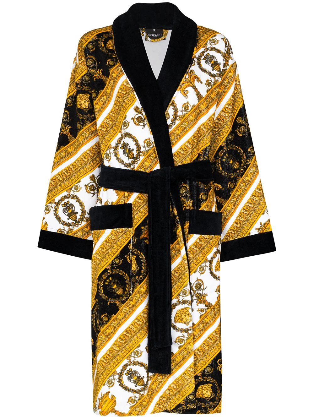 Taille ceinturée, deux poches latérales plaquées, motif baroque. MatiÚre : COTON.