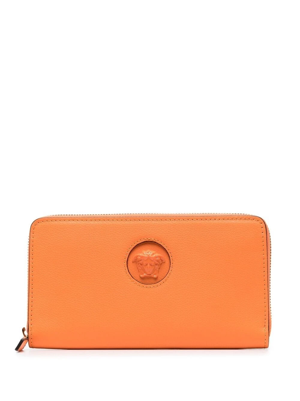 Logo imprimé sur le devant, fermeture zippée tout autour, compartiments intérieurs pour carte, poches intérieures zippées. Matière : cuir.