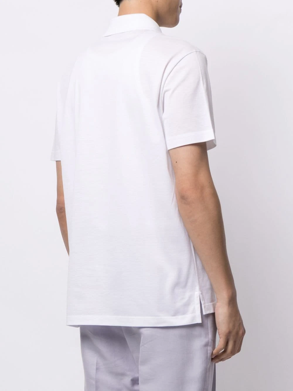 Motif Medusa, col polo, patte de boutonnage sur le devant, manches courtes, ourlet droit. Couleur : blanc. Matière : coton.