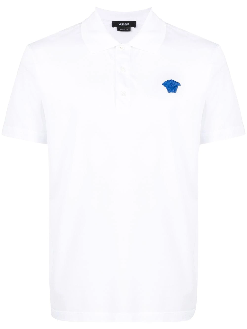 Col italien, boutonnière sur le devant, manches courtes, patch logo sur le devant. Couleur : blanc. Matière : coton.