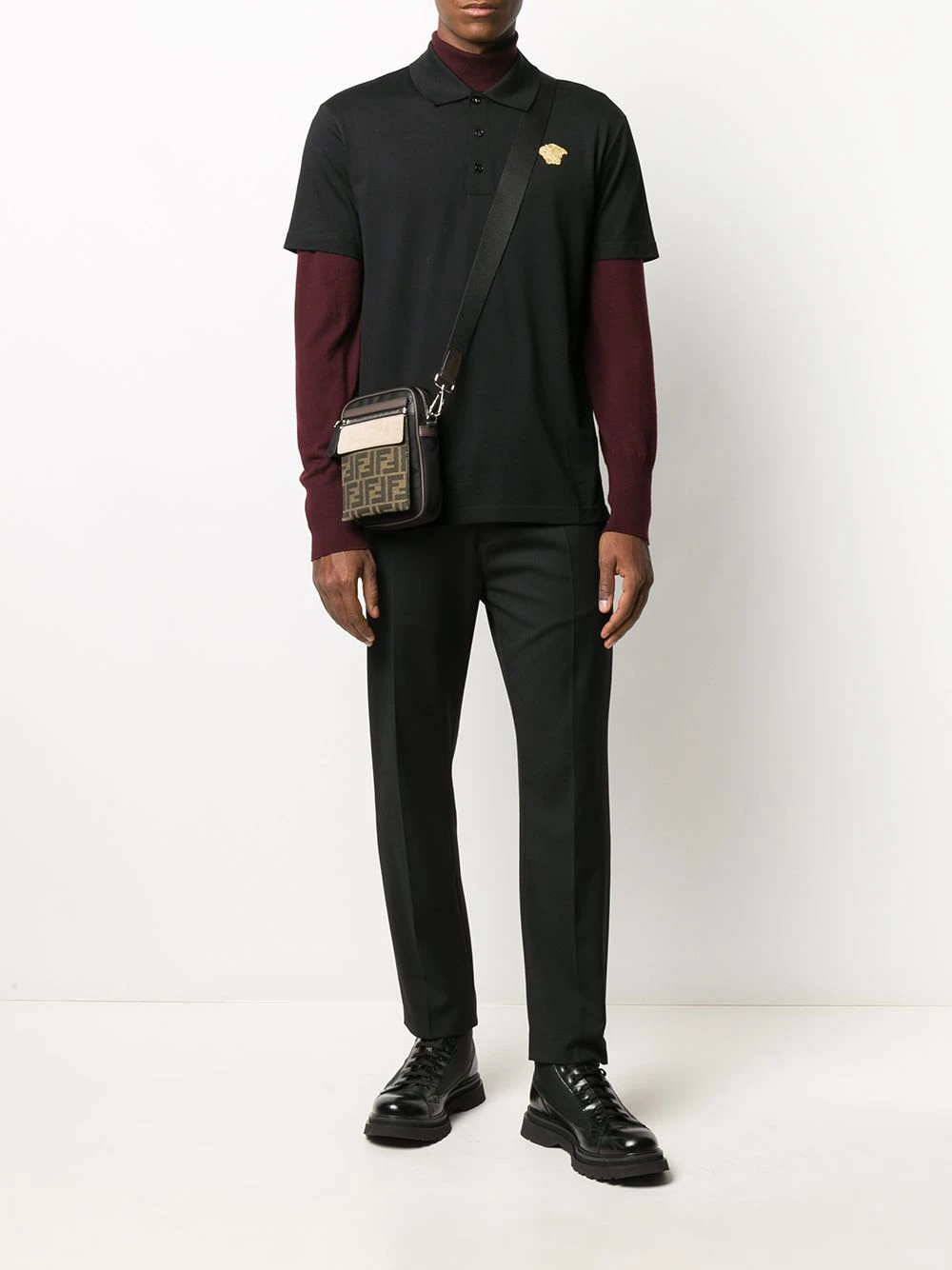 Motif Medusa, col italien, patte de boutonnage sur le devant, manches courtes. Couleur : noir. MatiĂšre : coton.