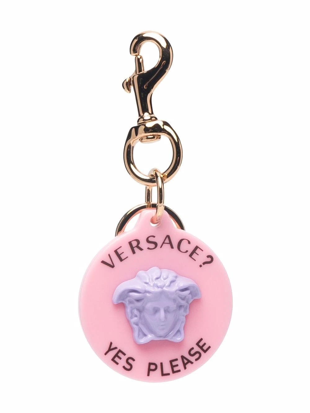 Finitions en métal doré, motif Medusa, breloque à logo, fermoir clip. Matière : métal.