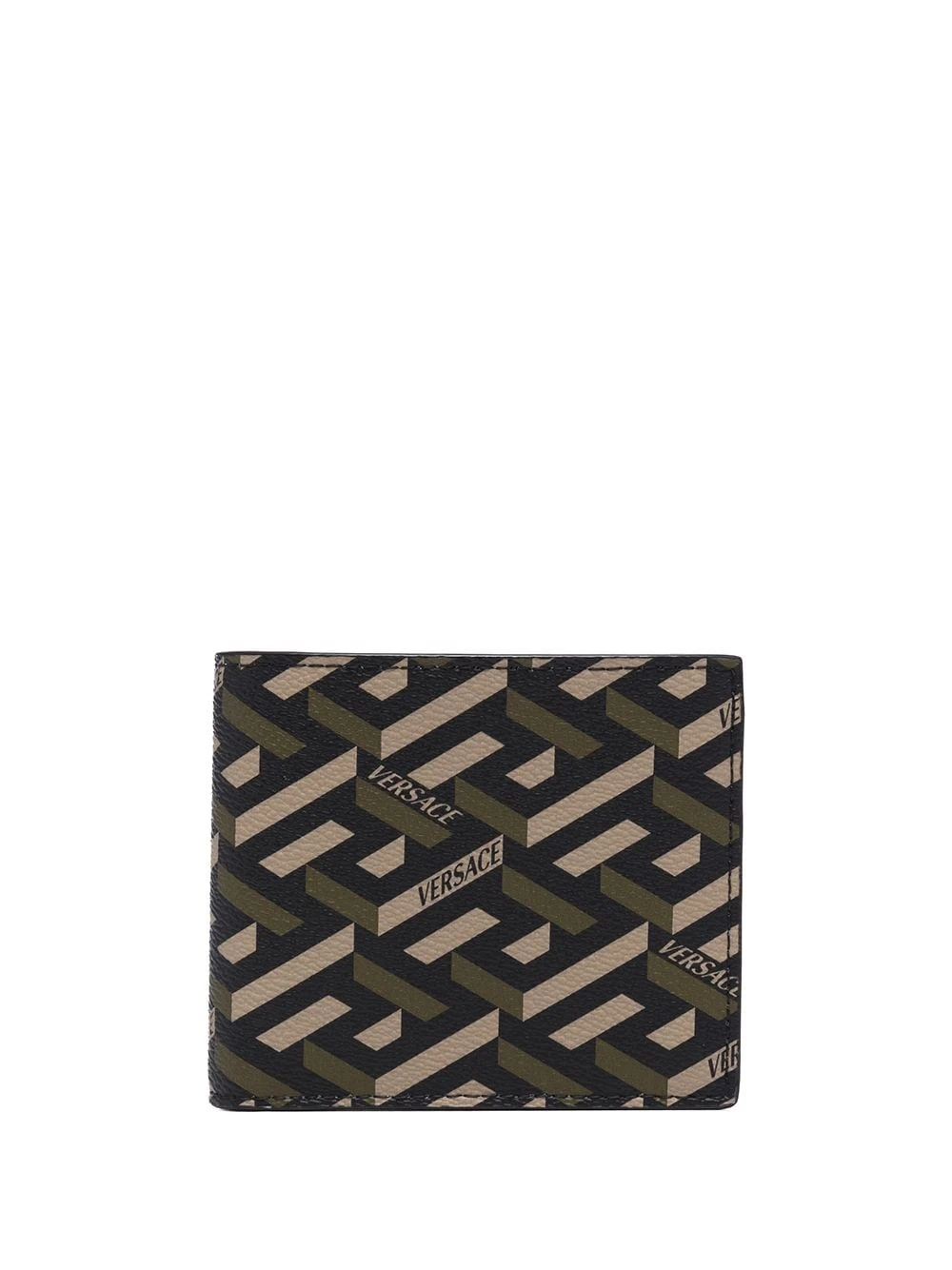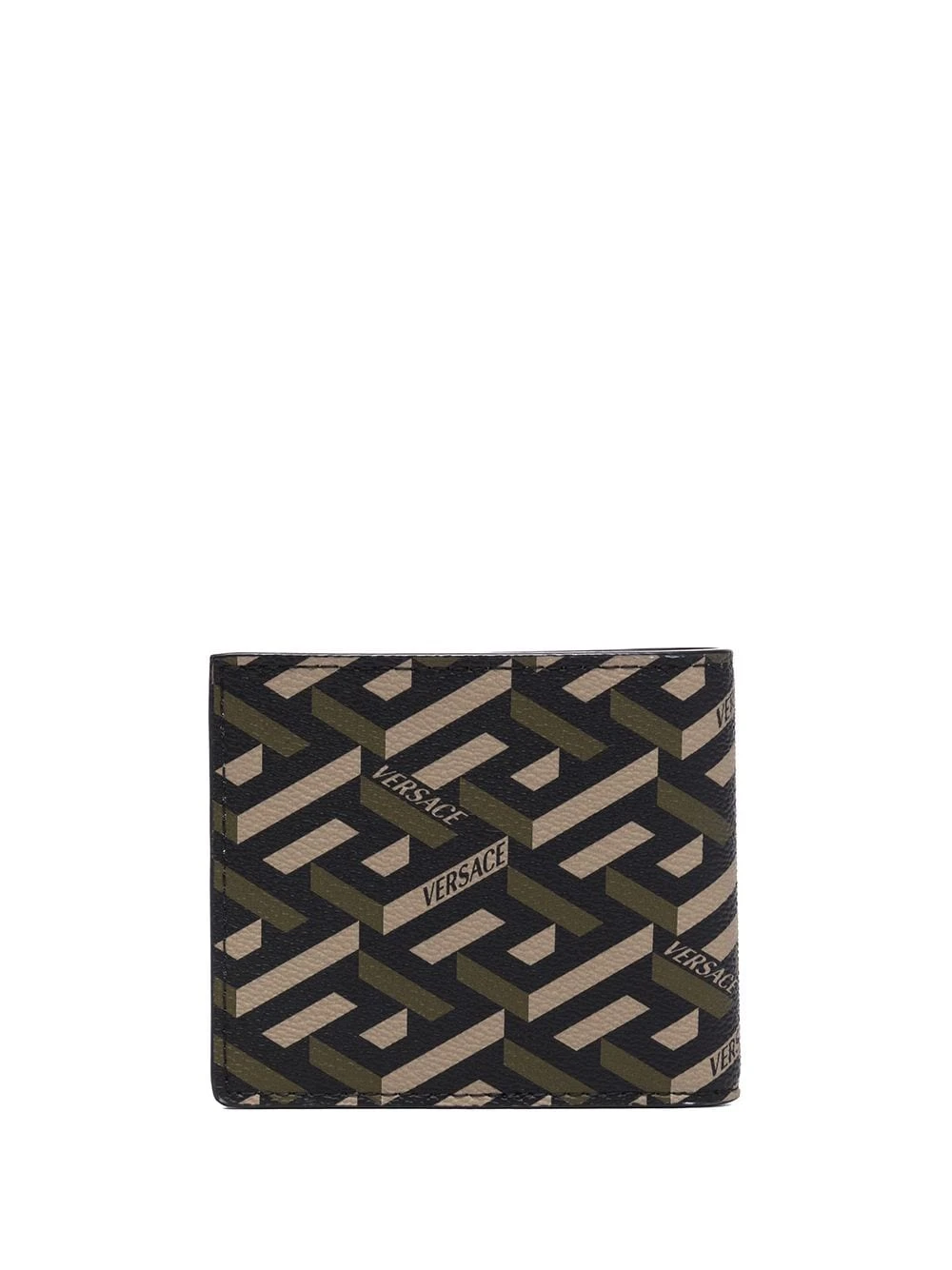 Imprimé monogrammé, rabat sur le dessus, compartiments intérieurs pour carte, compartiment à billets. Couleur : vert. Matière : cuir.