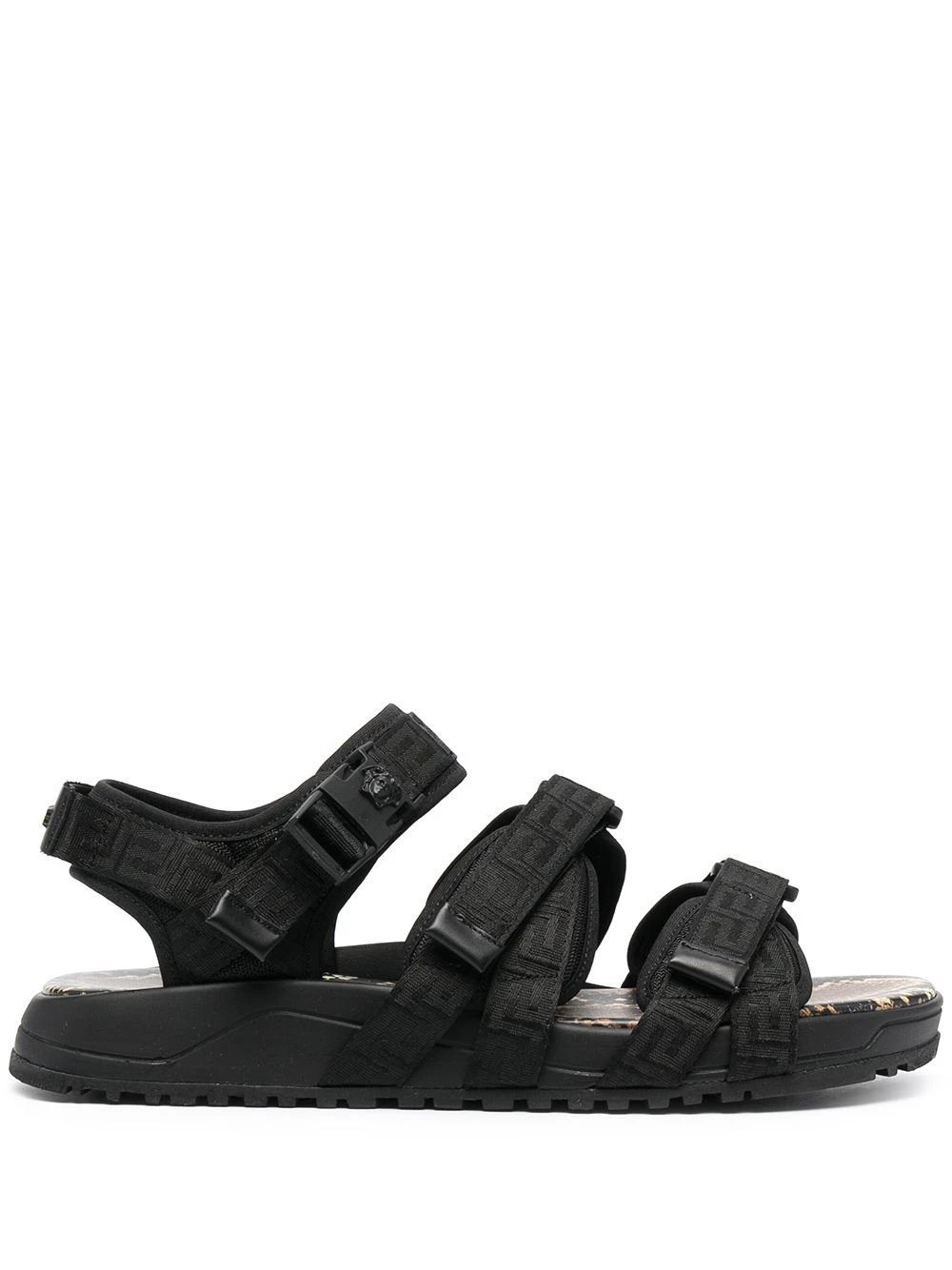 Bout ouvert, fermeture scratch, semelle intérieure à logo, semelle crantée en caoutchouc. Couleur : noir.