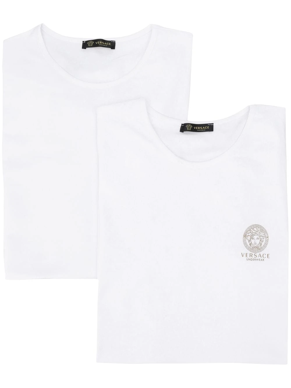 Lot de deux t-shirts en coton stretch à logo Medusa Versace avec encolure ras du cou, manches courtes, ourlet droit et coupe slim. Couleur: blanc.