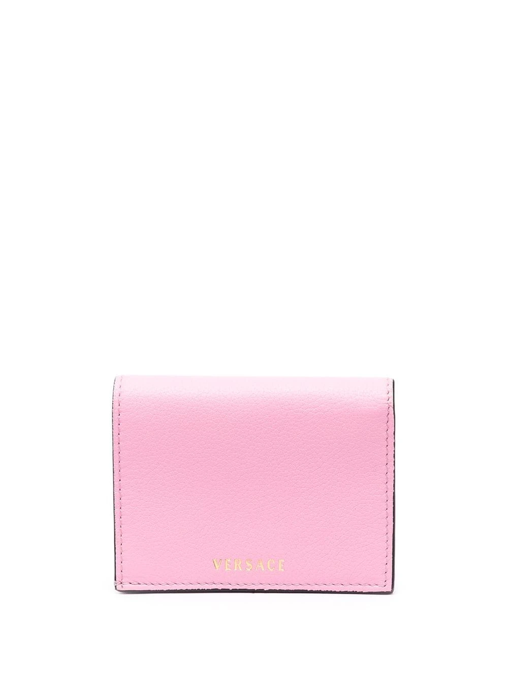 Détail Medusa, logo doré, finitions en métal doré, poche ticket, compartiments intérieurs pour carte. Matière : cuir.