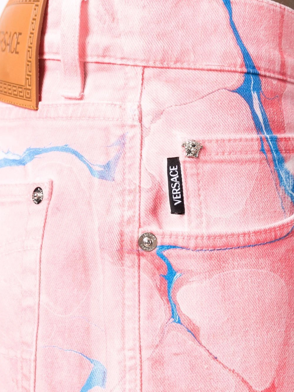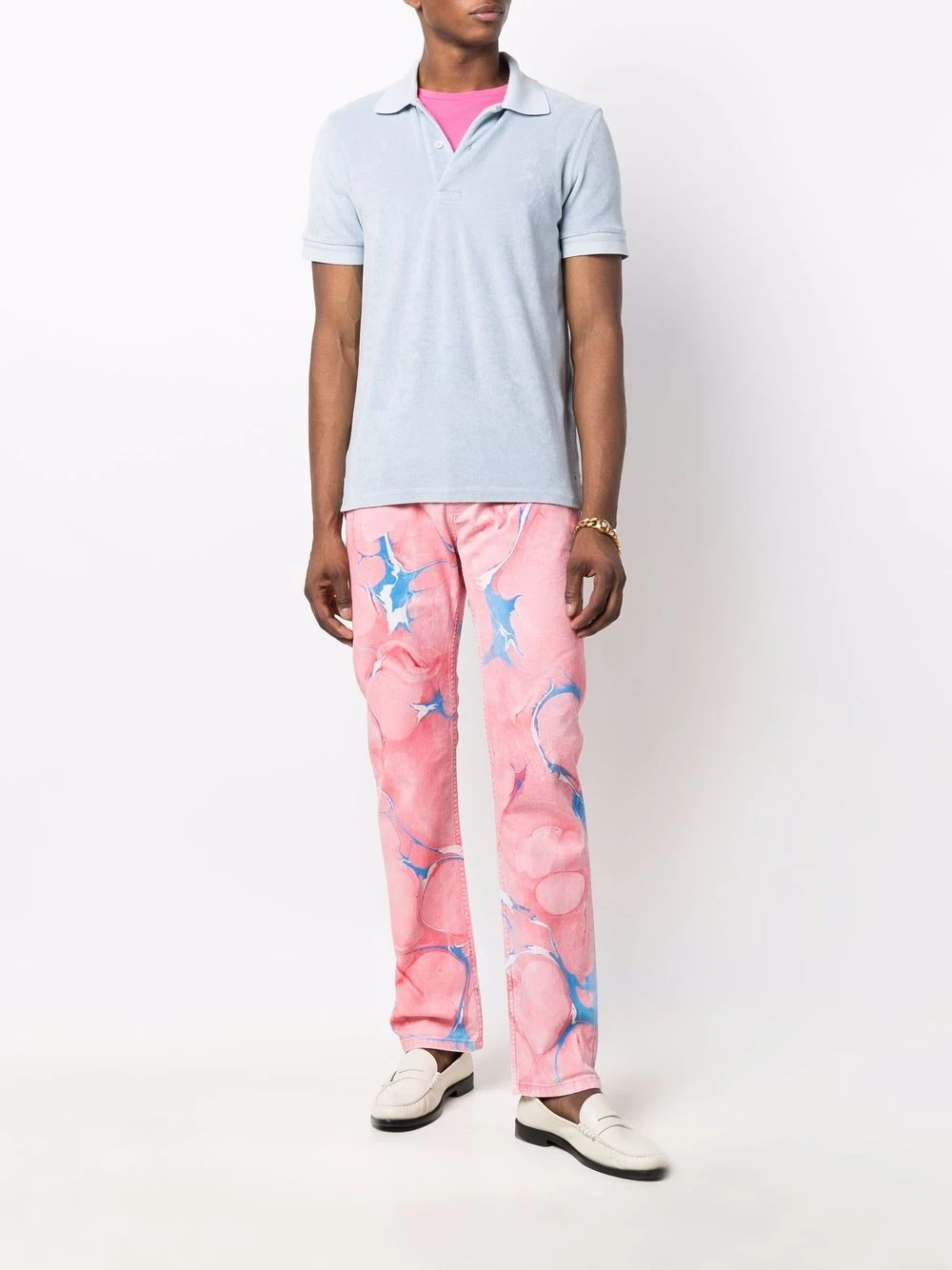 Taille mi-haute, patch logo sur l’arrière, passants de ceinture, fermeture à zip et boutons sur le devant, coupe droite, cinq poches classiques.