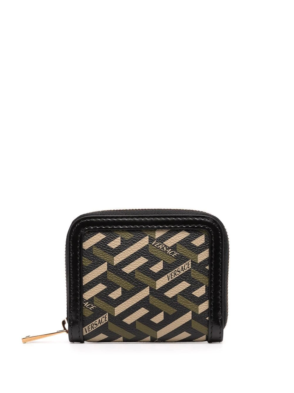 Imprimé La Greca signature, finitions en métal doré, fermeture zippée tout autour, compartiment intérieur. Matière : cuir.