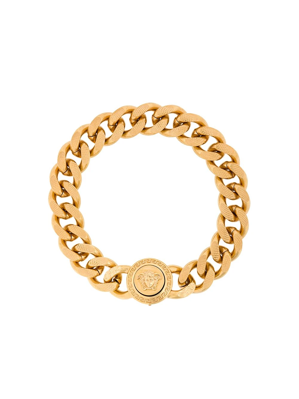 Bracelet à breloque logo doré Versace avec maille gourmette.