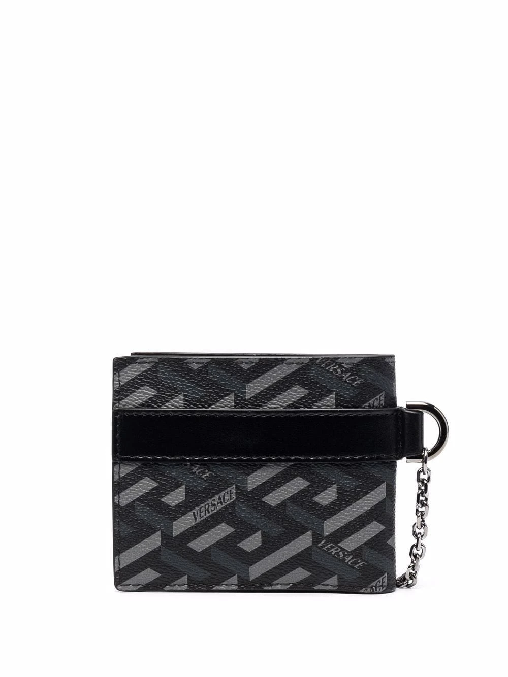 Fini mat, attache porte-clés, logo imprimé sur le devant, détails de clous argentés, fentes pour carte. Matière : cuir de veau.