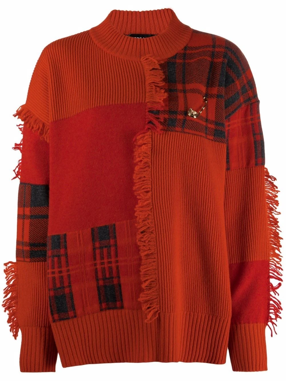 Détails d’empiècements, carreaux Plaid, détail nervuré, col montant, manches longues. Couleur : orange.