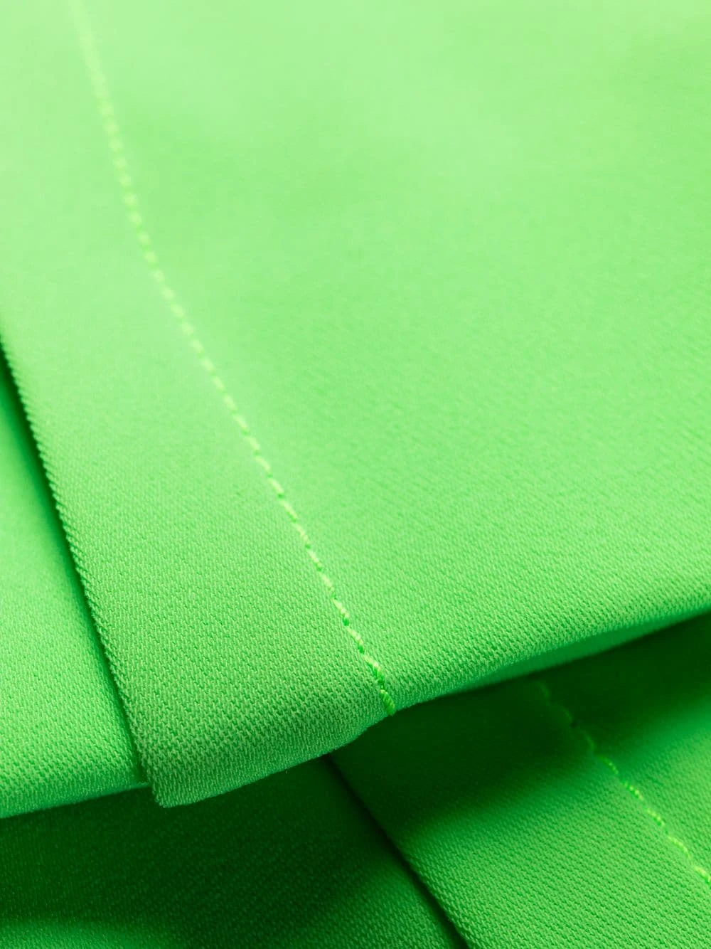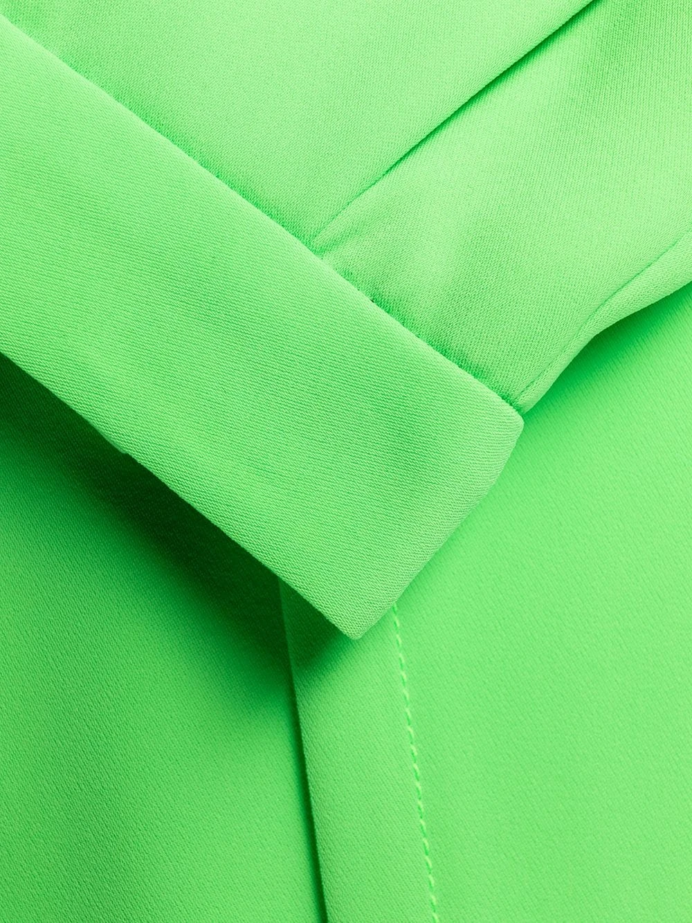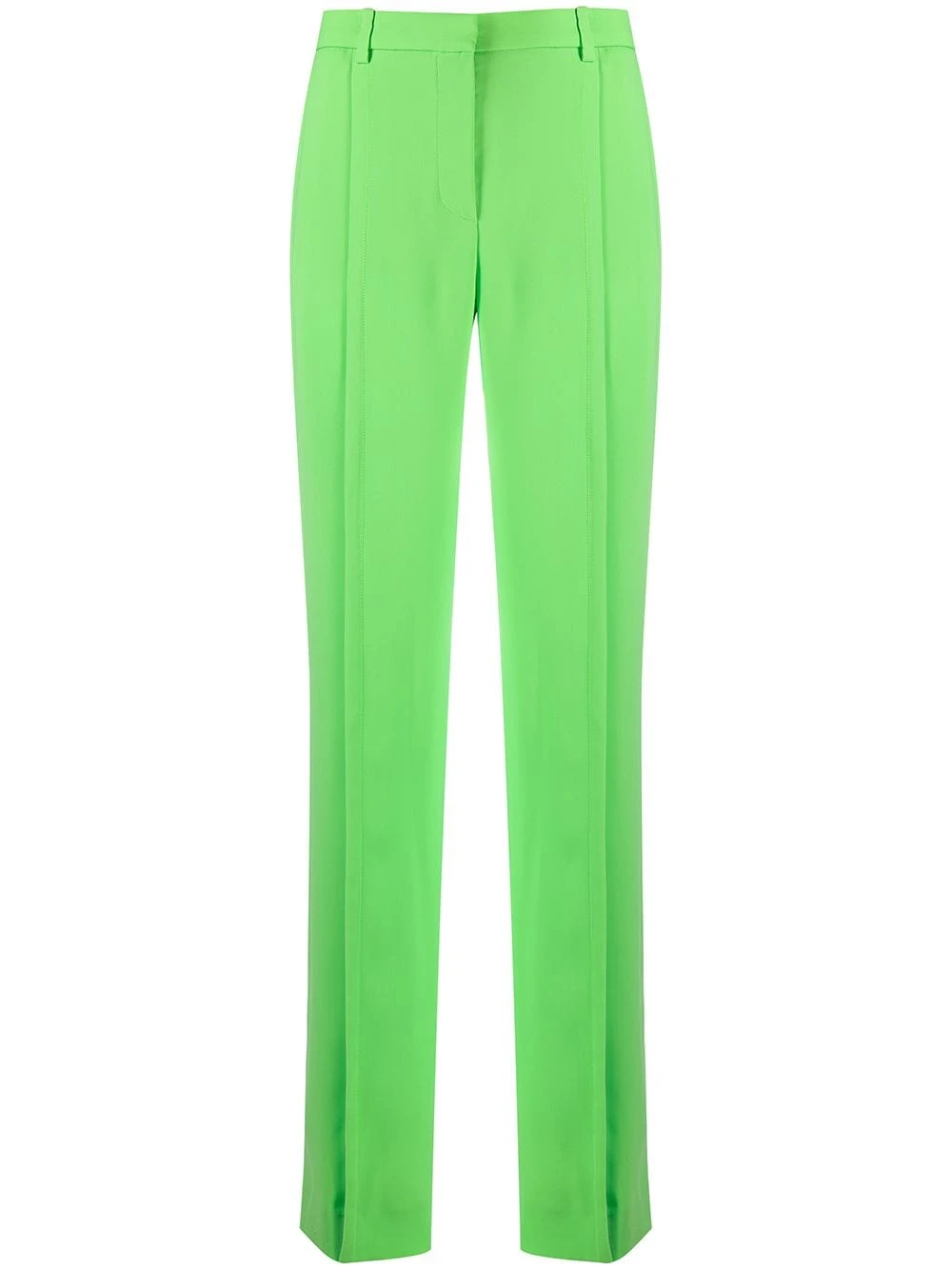 Taille haute, coupe ample, passants de ceinture, fermeture à zip et agrafes, deux poches latérales passepoilées.