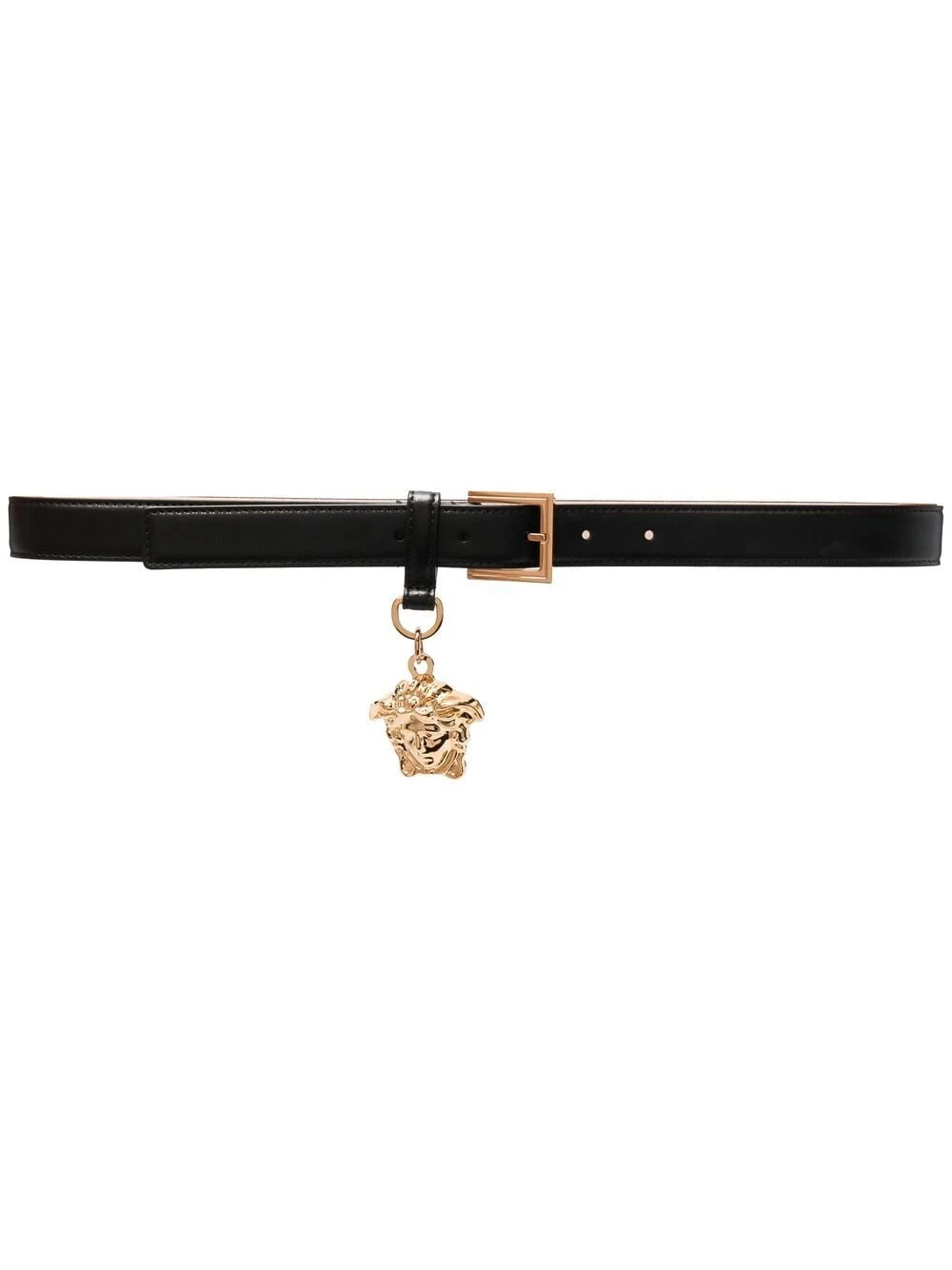 Détail Medusa, fermeture à boucle, taille ajustable. Couleur : noir. Matière : cuir.