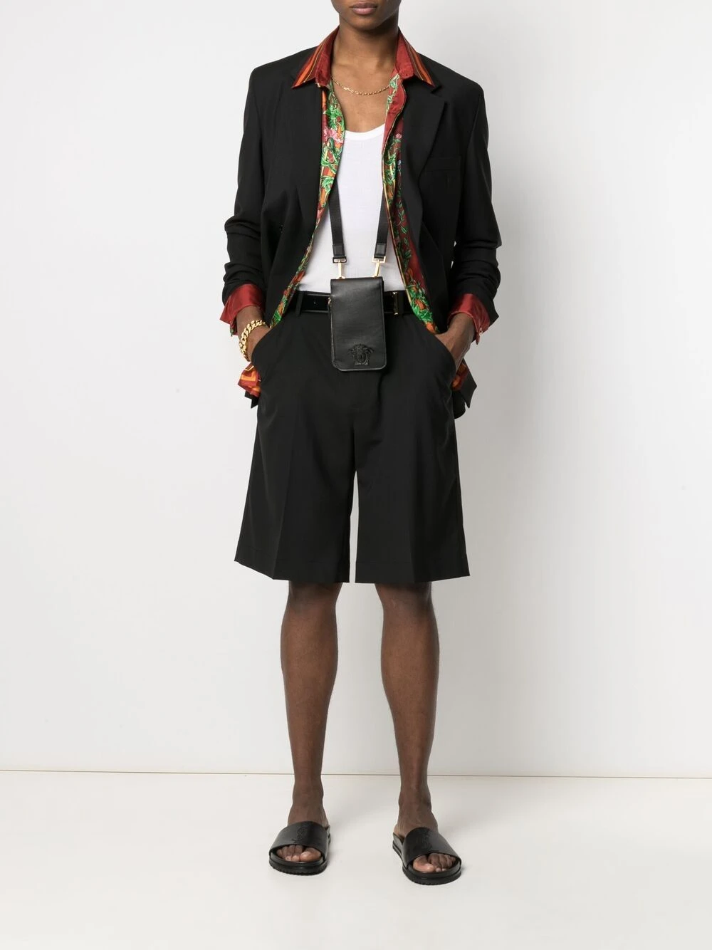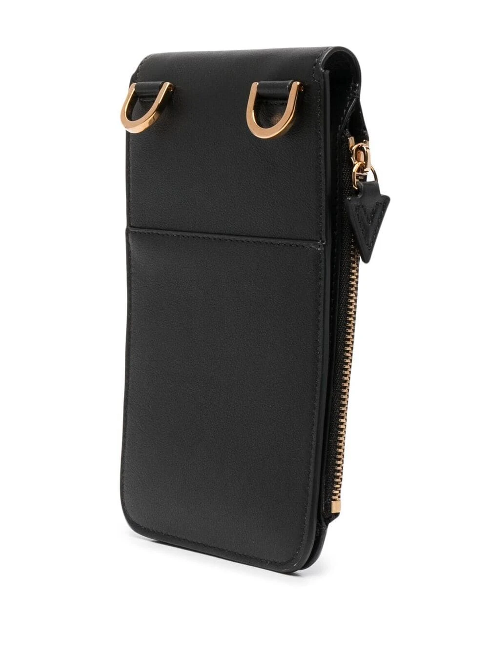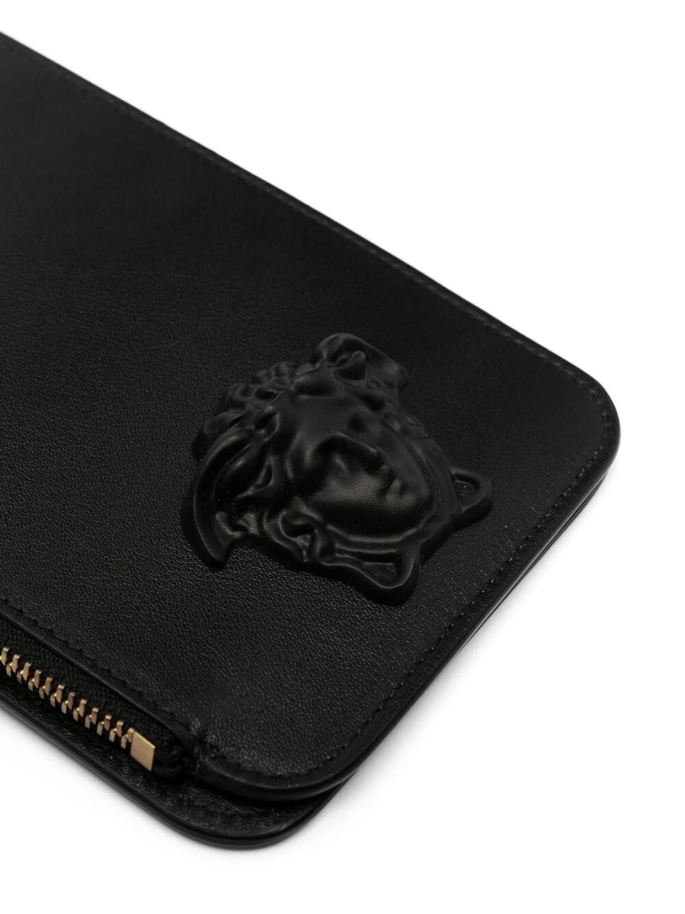 Motif Medusa, bride porté épaule détachable, poche zippée, compartiments intérieurs pour carte, poche intérieure plaquée, logo imprimé à l’intérieur, finitions en métal doré. Couleur : noir. Matière : cuir.