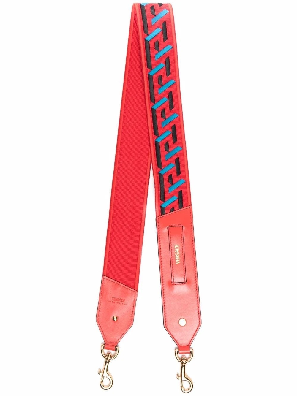 Imprimé La Greca signature, finitions en métal doré, fermoir mousqueton. Matière : cuir.