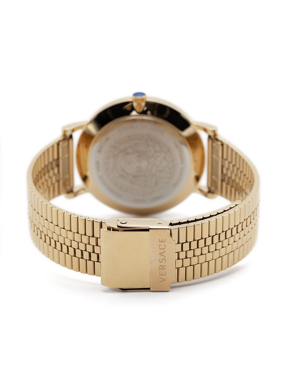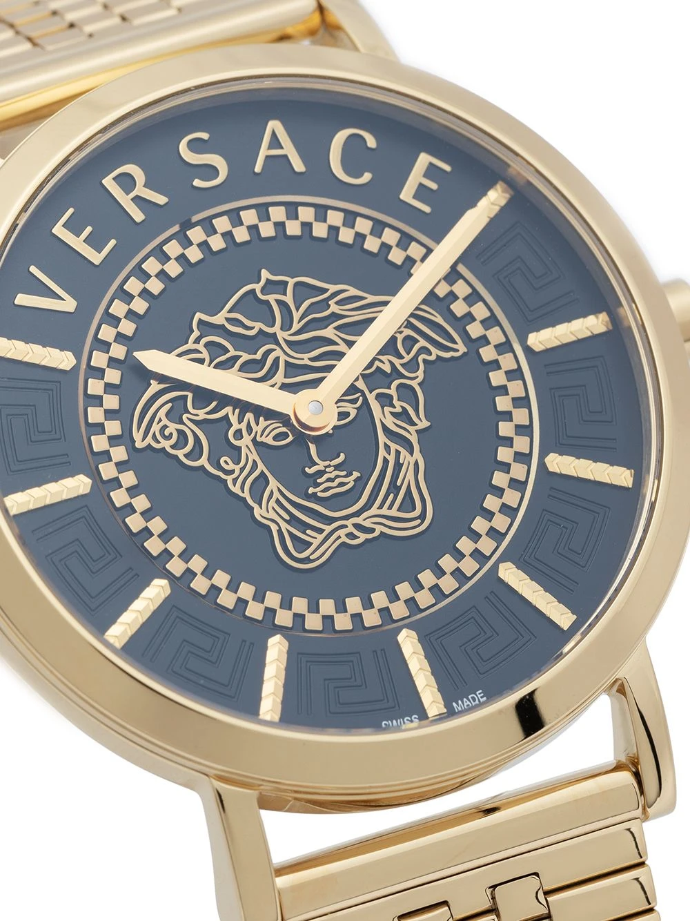 Boîtier rond, mouvement à quartz, bracelet à maillons ajustable, fermeture à loquet, aiguilles index, motif Medusa, couronne vissée. Cet article bénéficie de deux ans de garantie standard proposés par la marque.