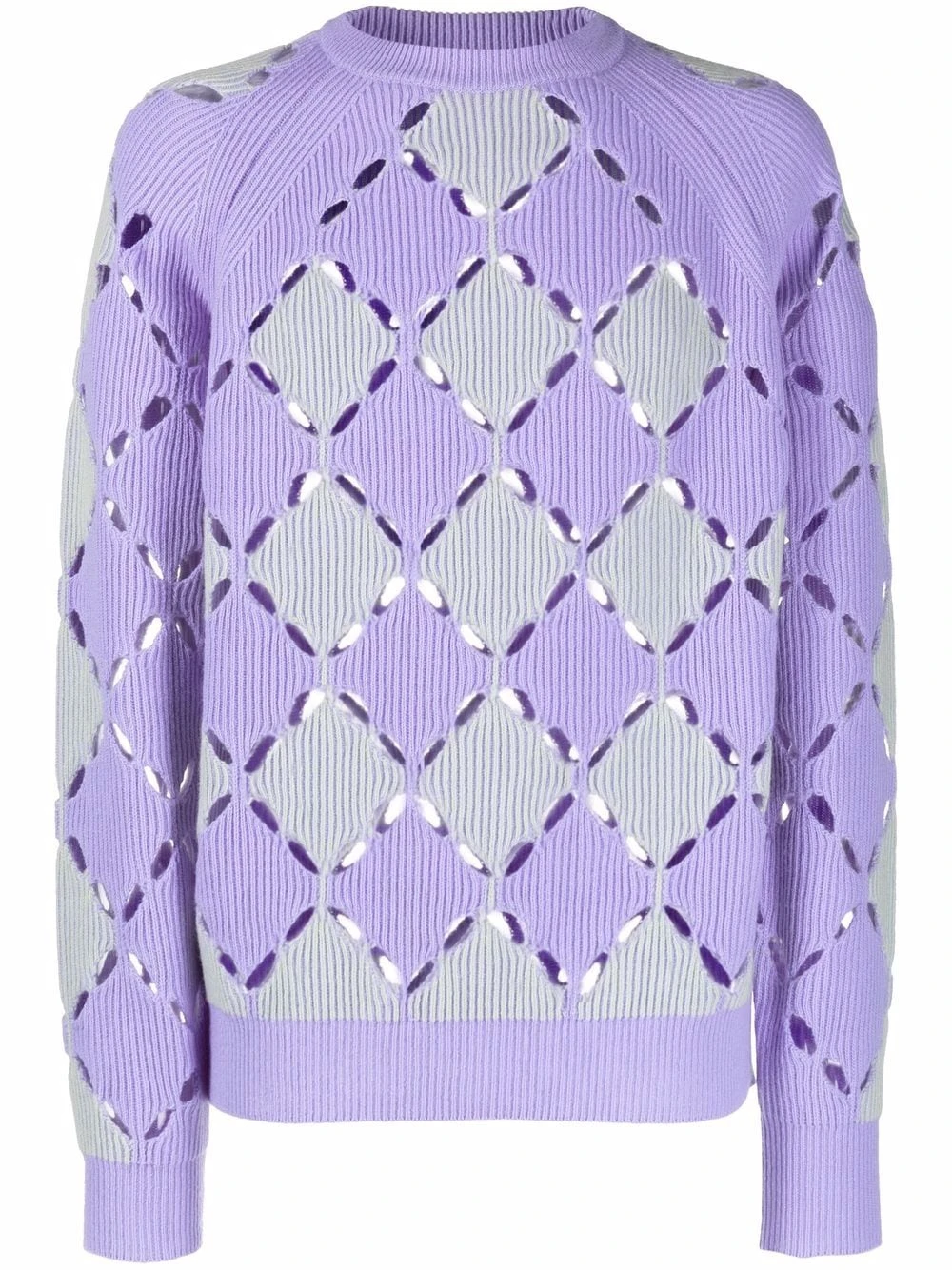 Design perforé, maille nervurée, design colour block, encolure ras du cou, manches longues, ourlet droit. Matière : laine.