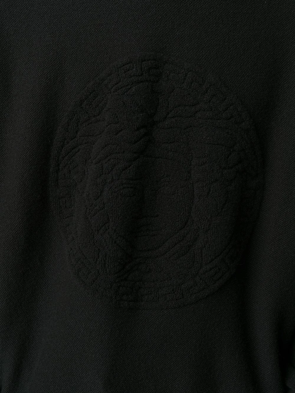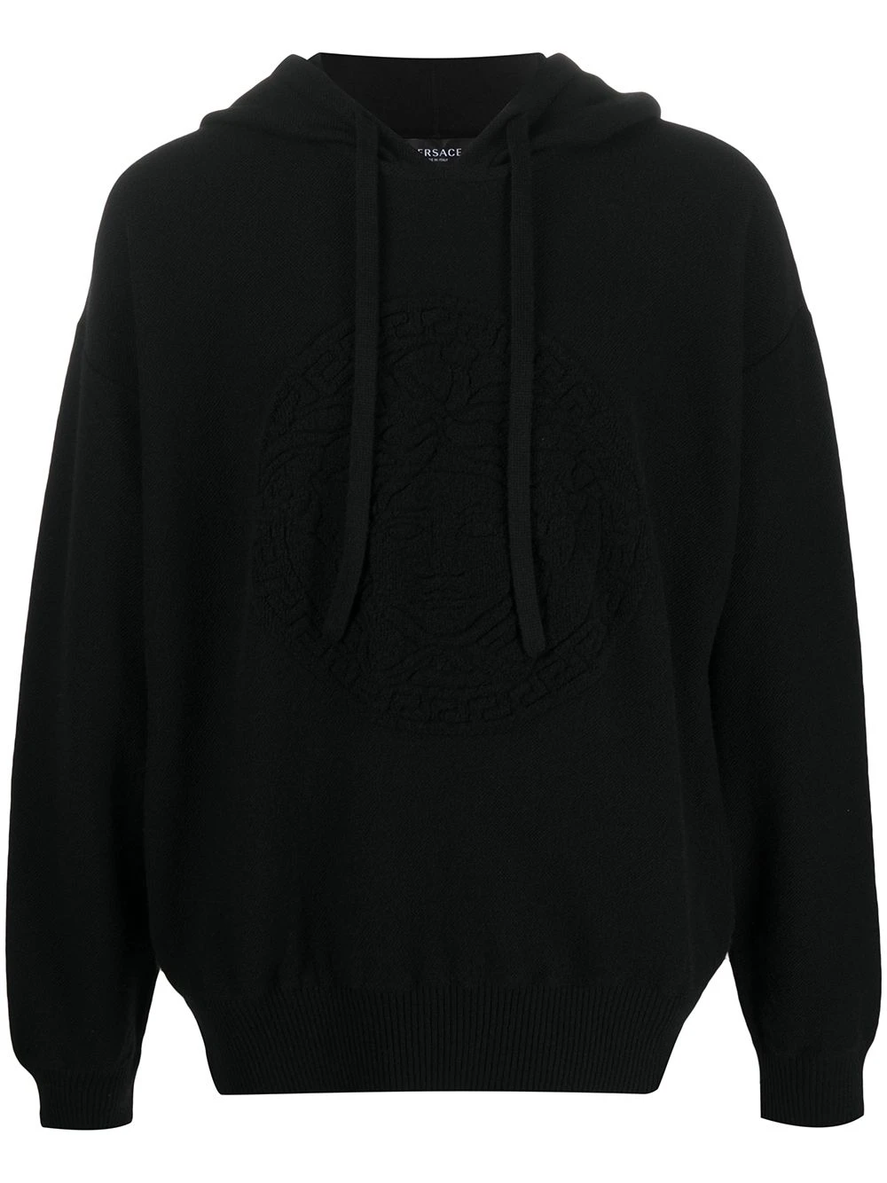 Capuche classique, lien de resserrage, manches longues, manches à poignets resserrés. Couleur : noir.