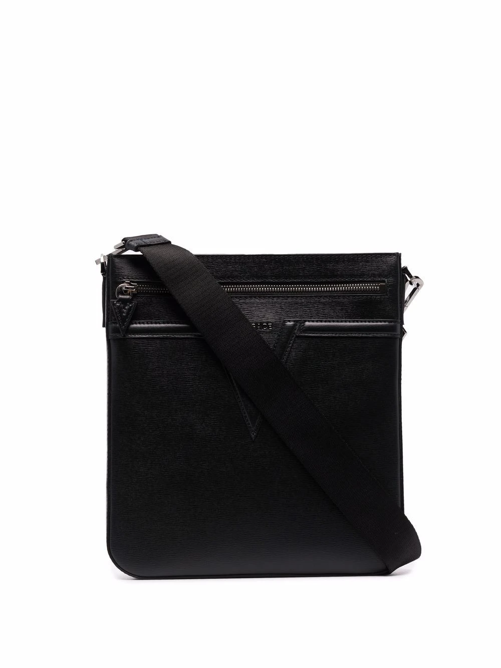 Fini texturé, logo embossé sur le devant, fermeture zippée sur le dessus, bretelle portée épaule unique, compartiment principal, poche zippée sur le devant.