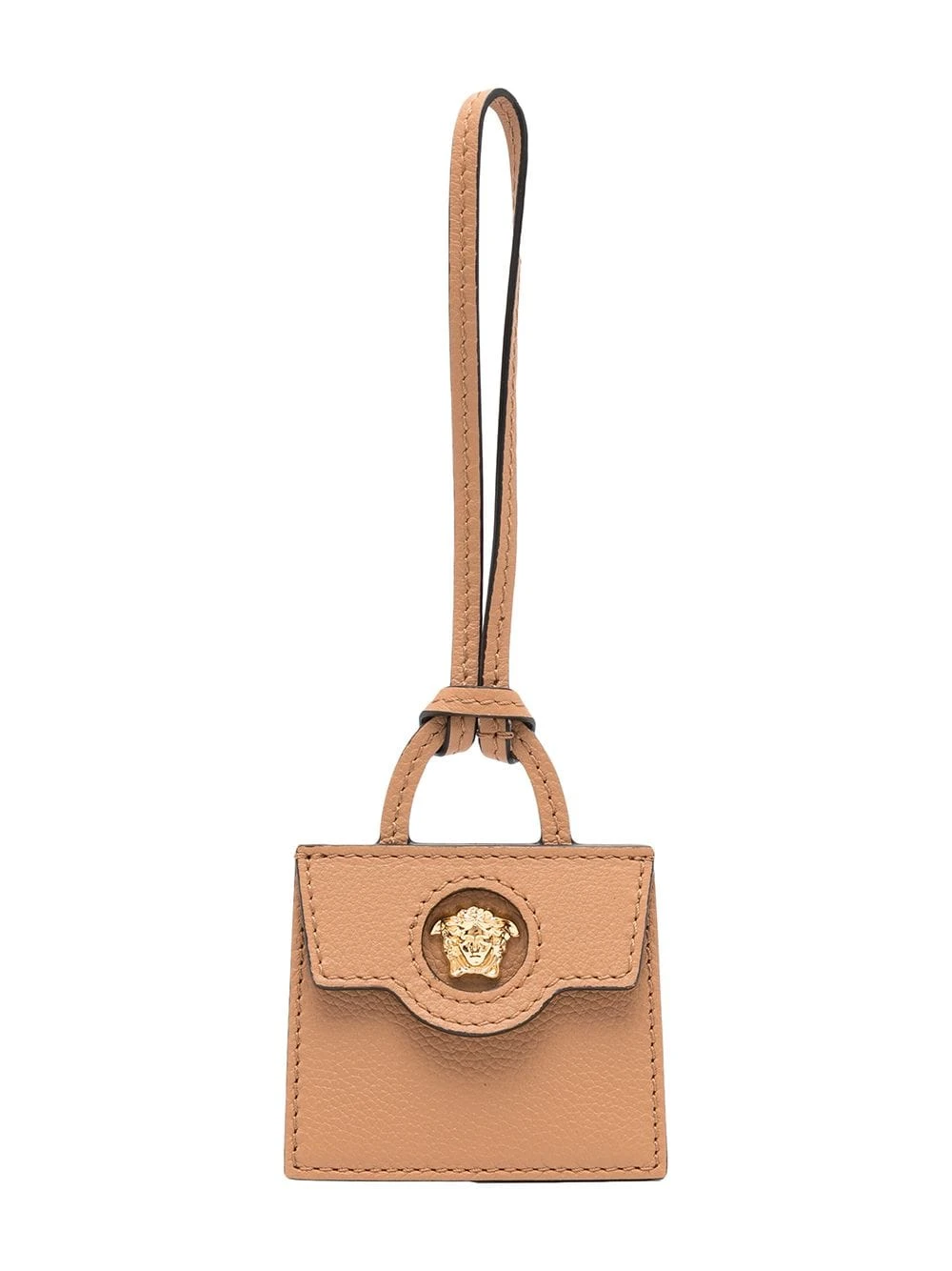 Motif Medusa, finitions en métal doré, logo imprimé à l’arrière. Couleur : marron. Matière : cuir.
