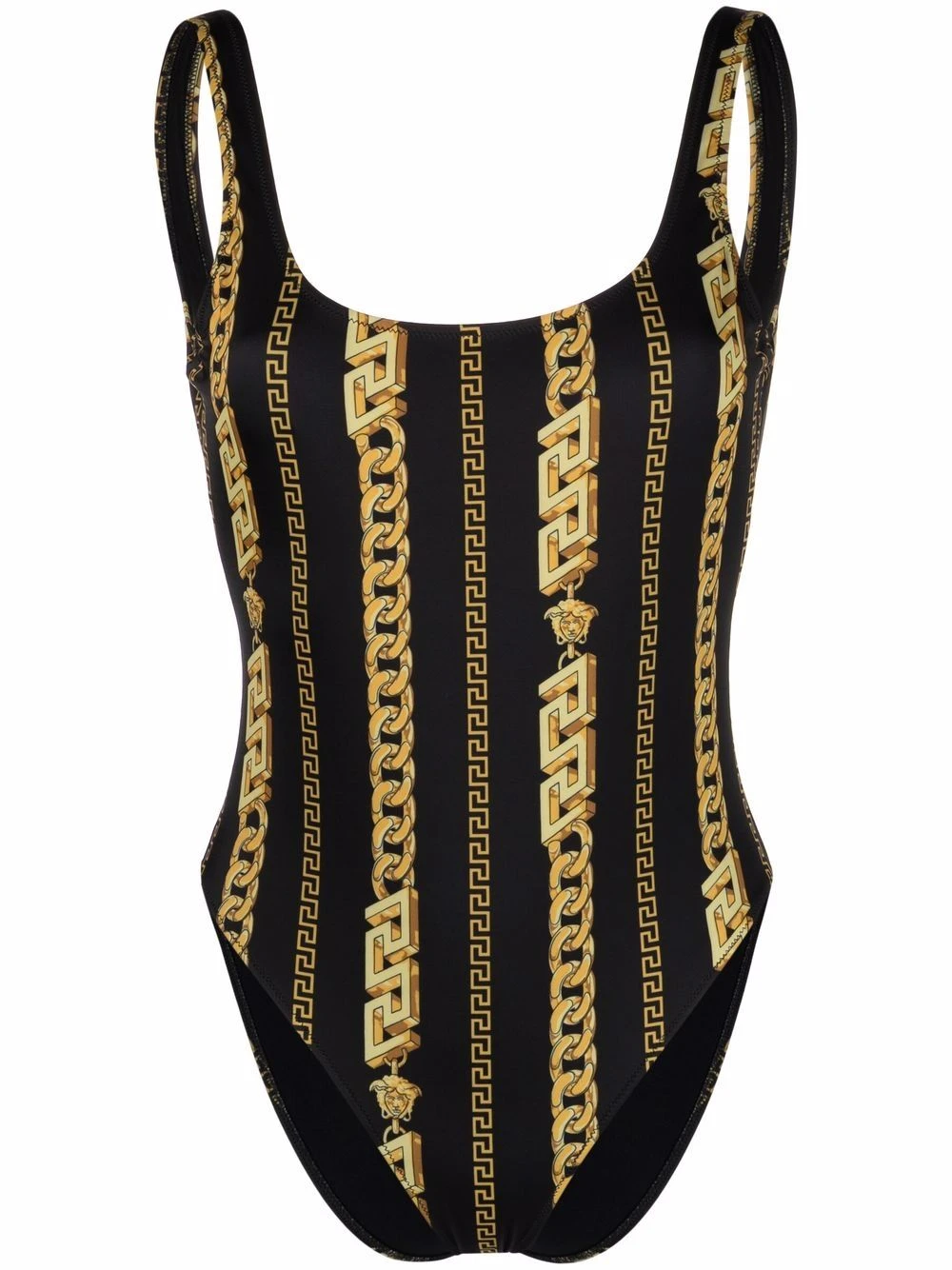 Construction stretch, imprimé chaßne, encolure arrondie, décolleté au dos. Couleur : noir.