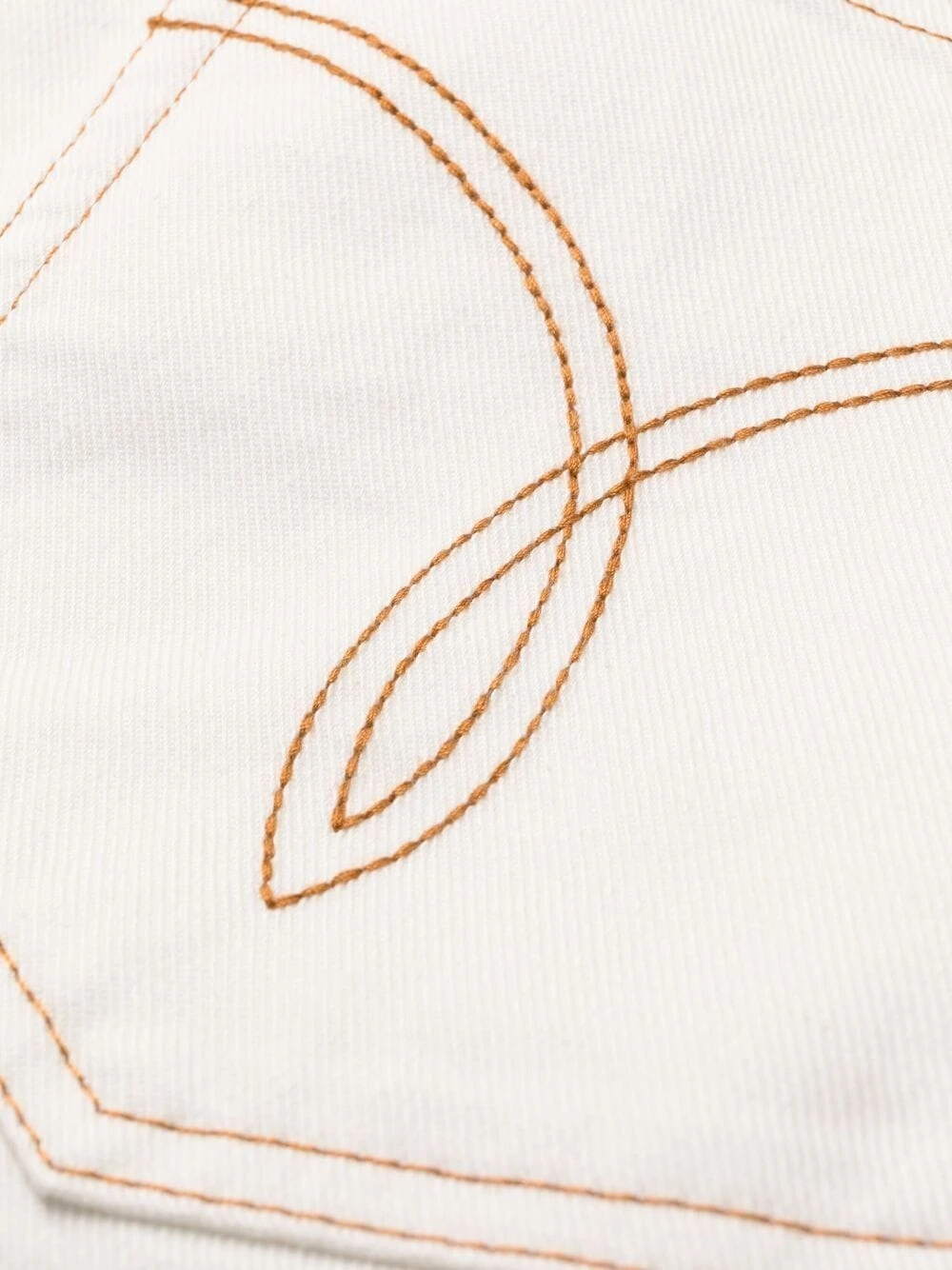 Patch logo sur l’arrière, passants de ceinture, fermeture à zip et boutons sur le devant, 5 poches classiques. Couleur : blanc. Matière : coton mélangé.